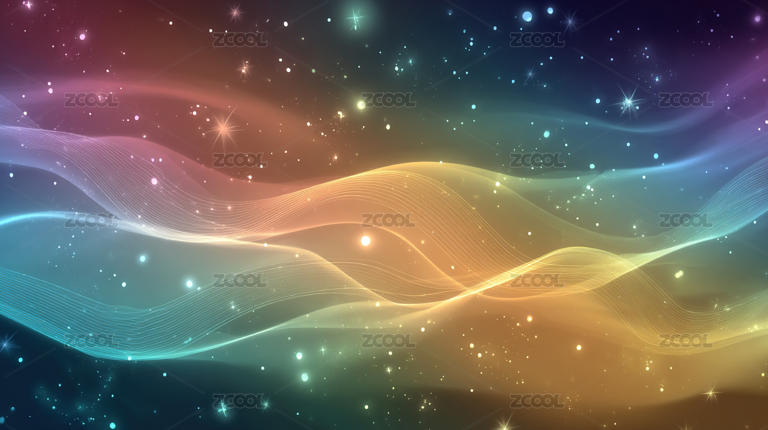 梦幻彩色渐变波浪线壁纸抽象背景