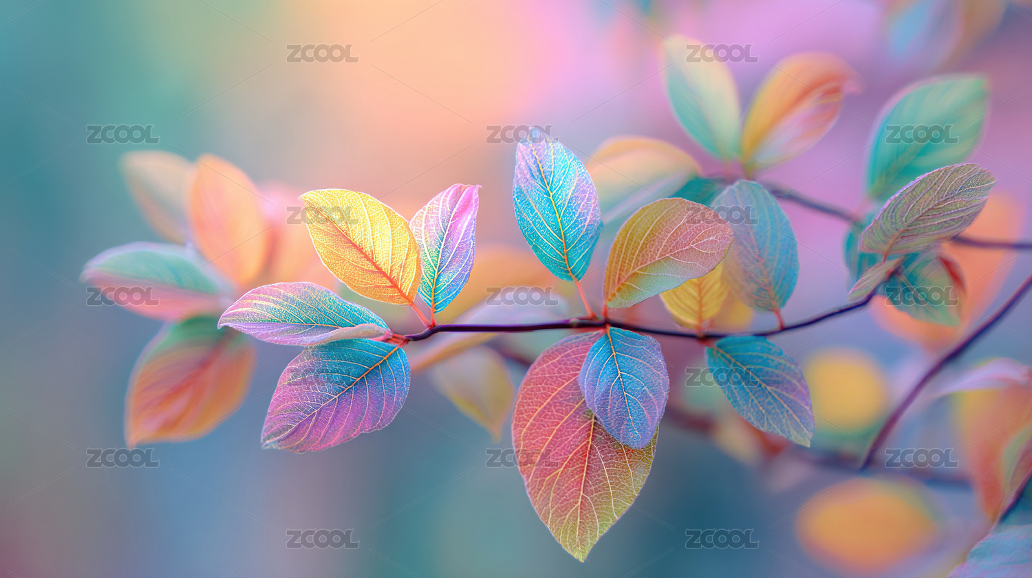 彩色叶片清新装饰场景