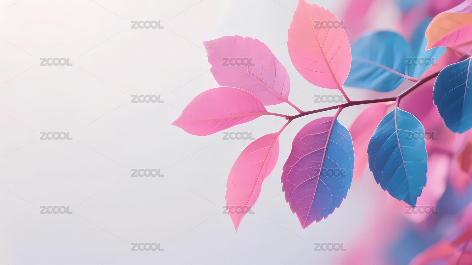 粉蓝叶子清新渐变