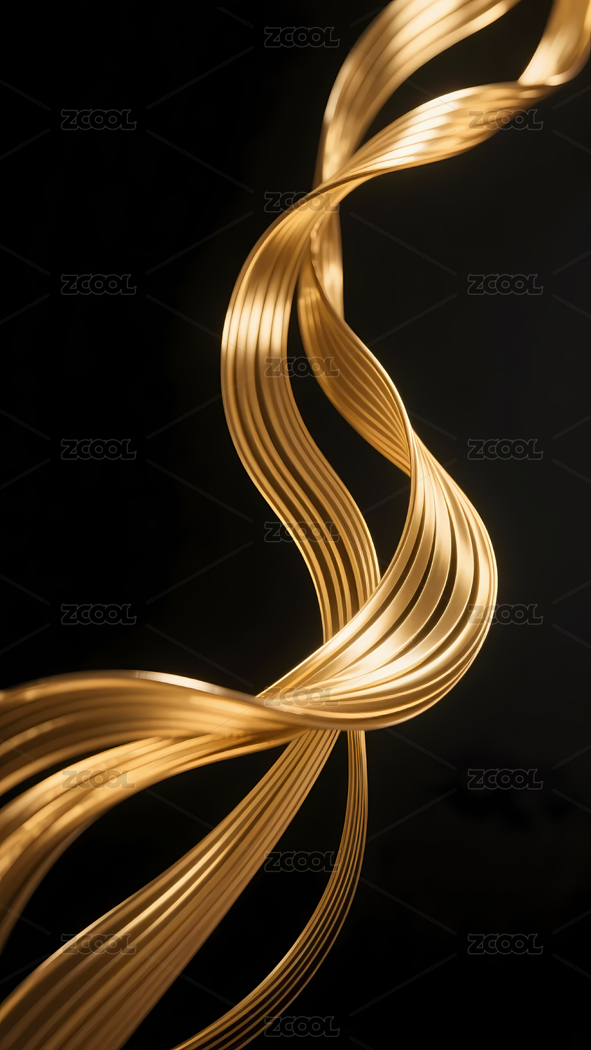抽象波纹线螺旋和金色飘带