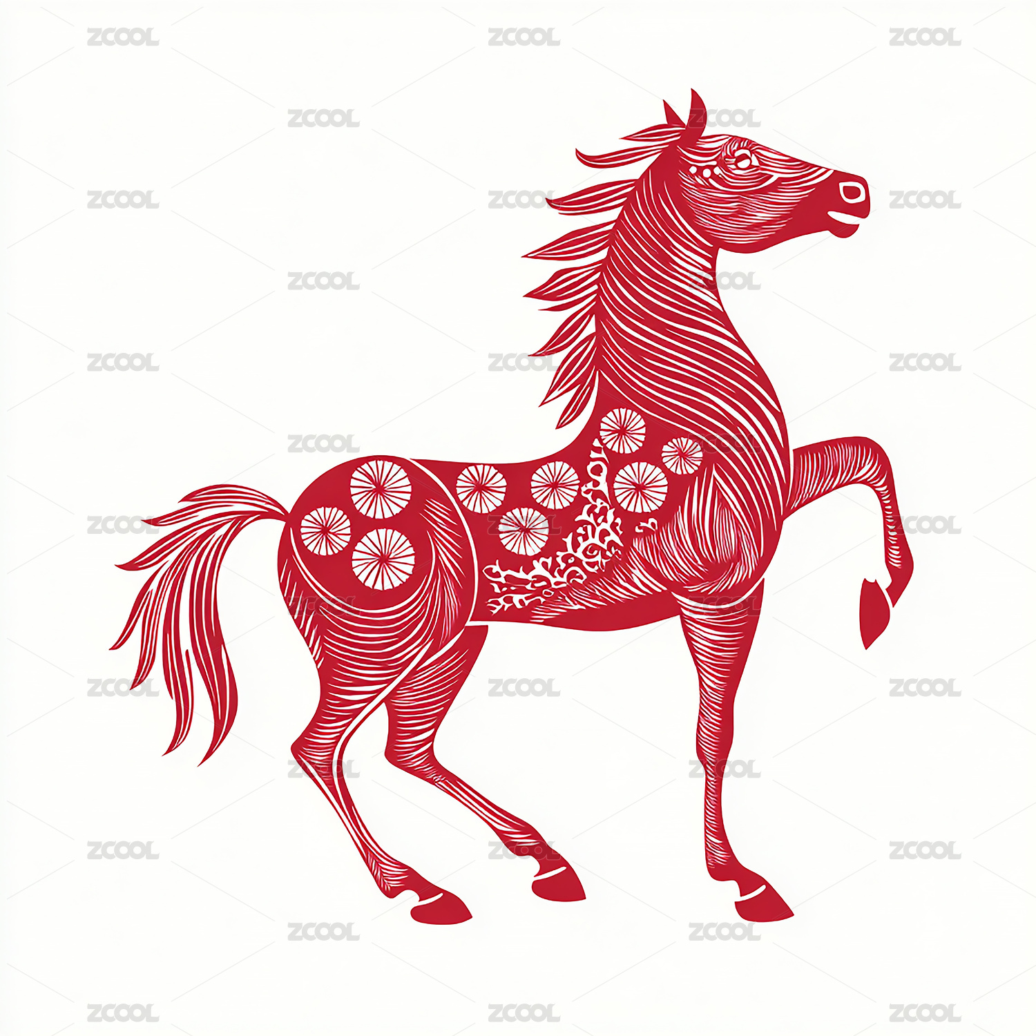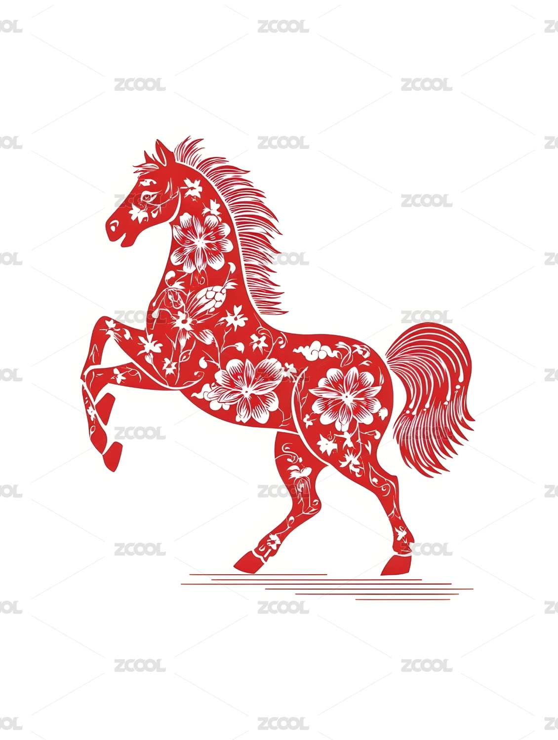 马,红色,剪纸,花卉,图案,艺术,动物,马年,生肖马,装饰