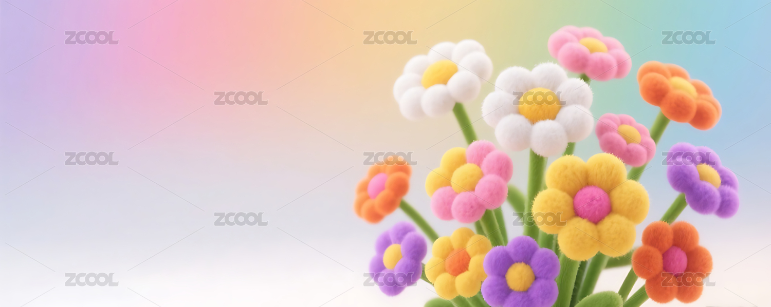 羊毛毡,毛绒绒,毛茸茸,3D,背景,渐变,彩色,雏菊,花