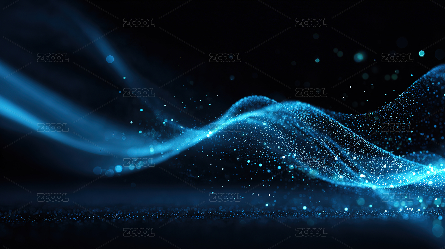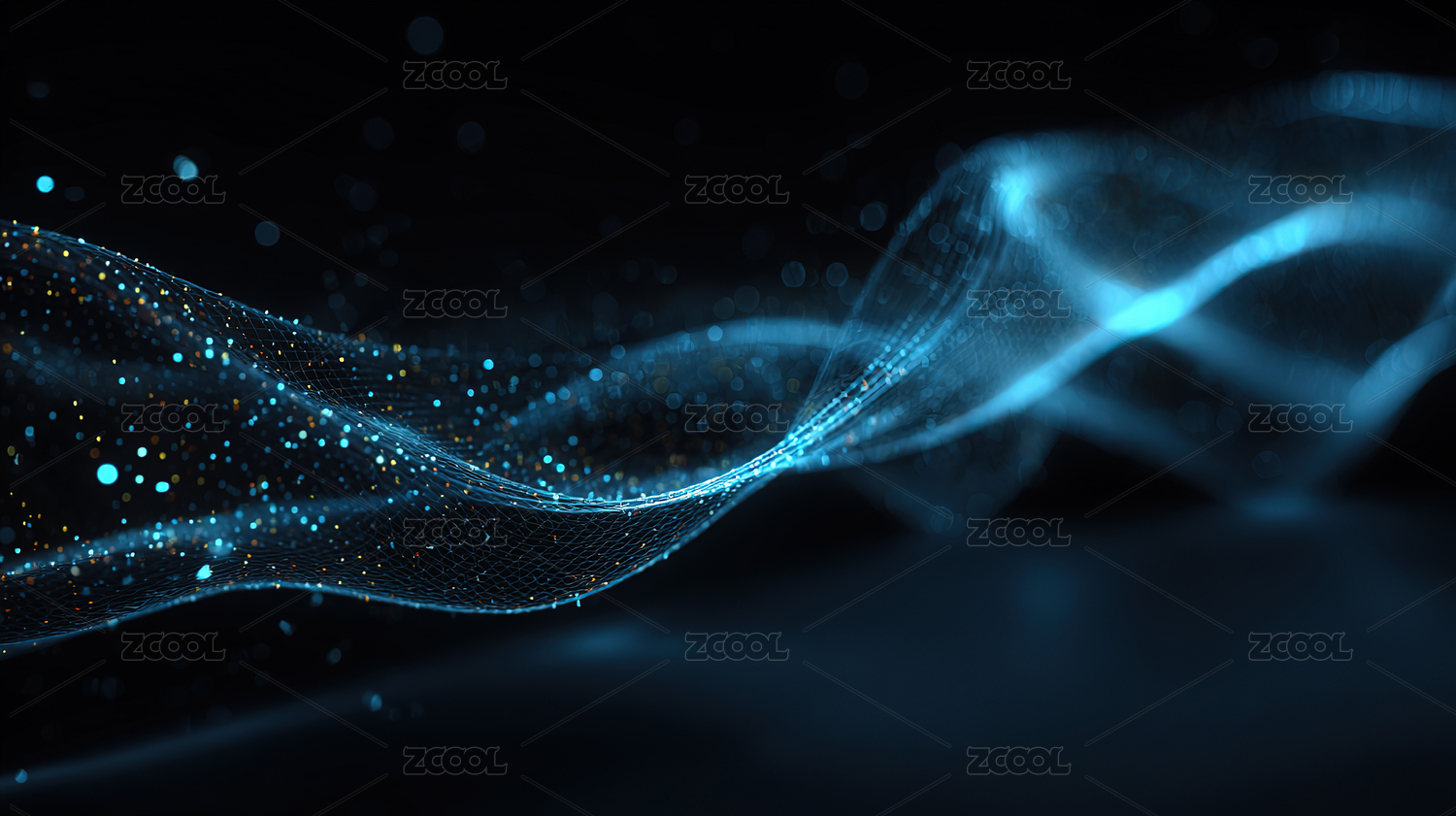 蓝色光点构成的流动波浪科技图案
