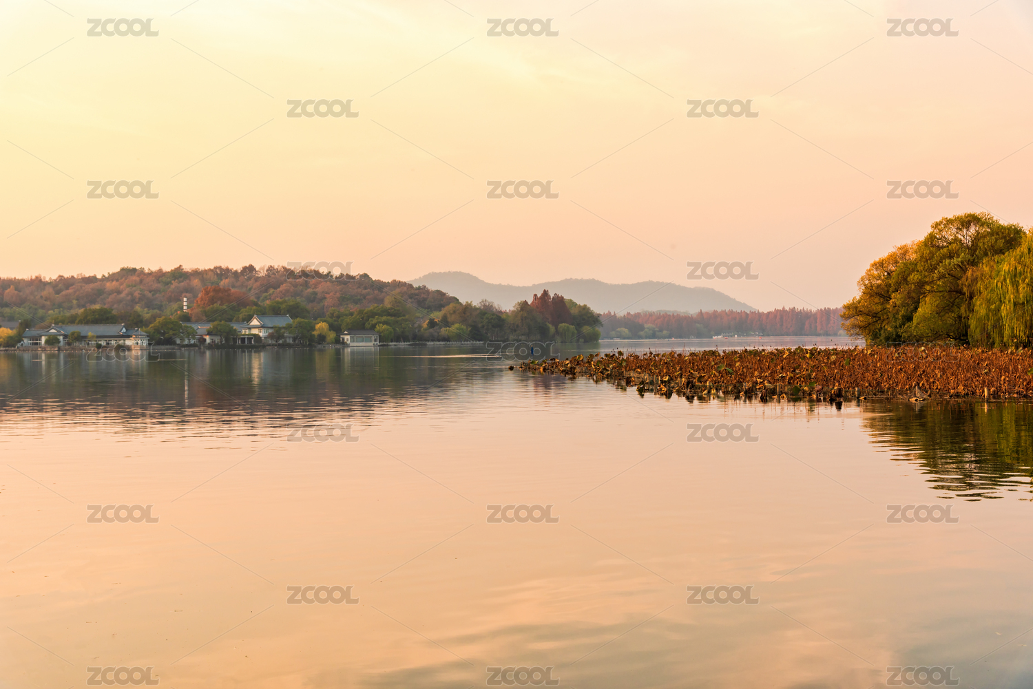 广州麓湖公园落羽杉黄叶秋景湖泊自然风光