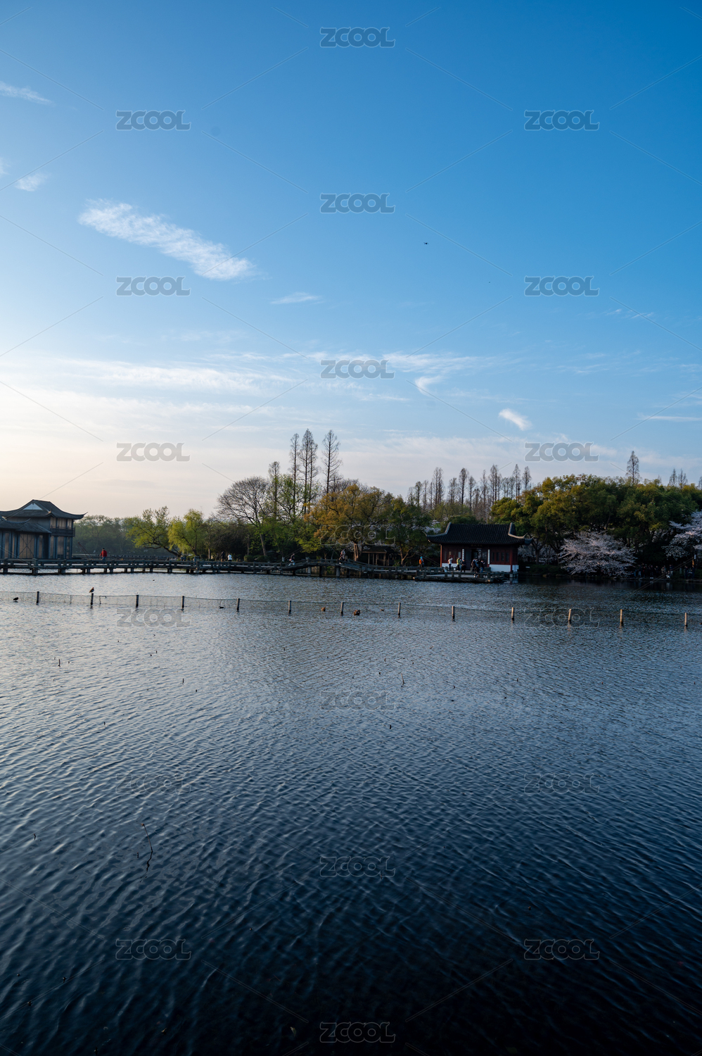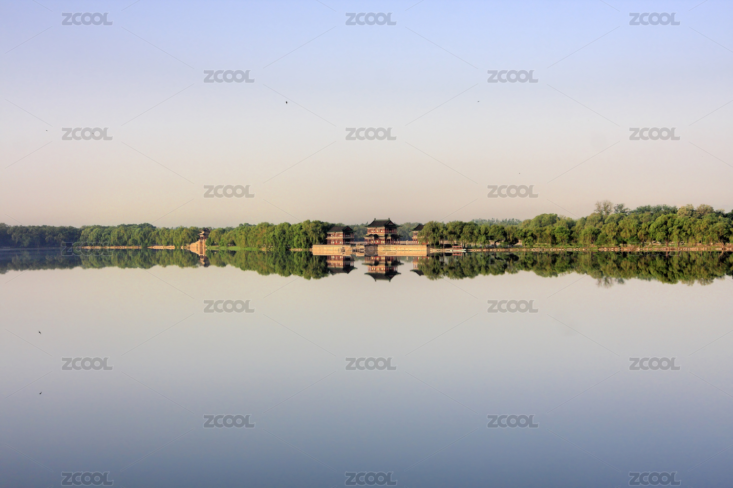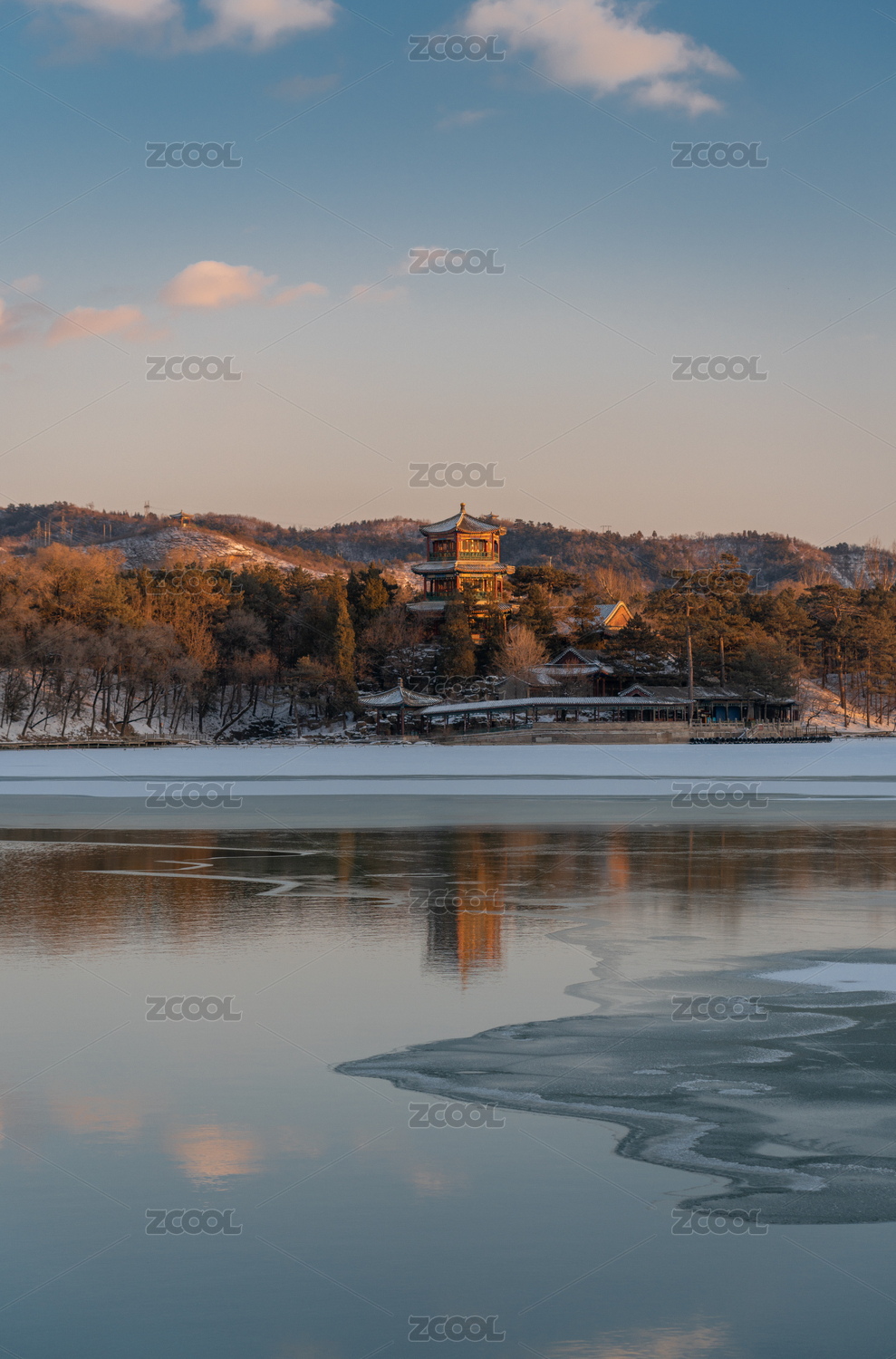 春天清晨阳光下的颐和园昆明湖与佛香阁