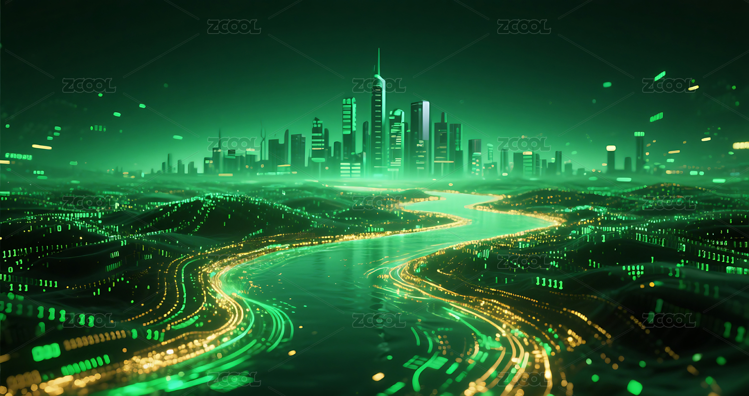 波浪,数字化,网络,未来,城市,科技感,数据流,景观,人工,智能