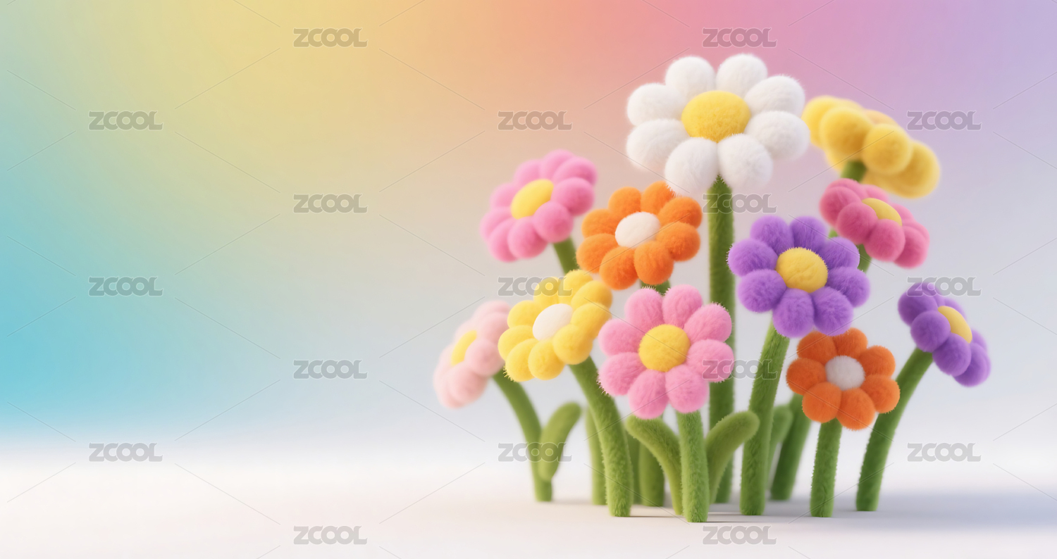 羊毛毡,毛绒绒,毛茸茸,3D,背景,渐变,彩色,治愈,百合花