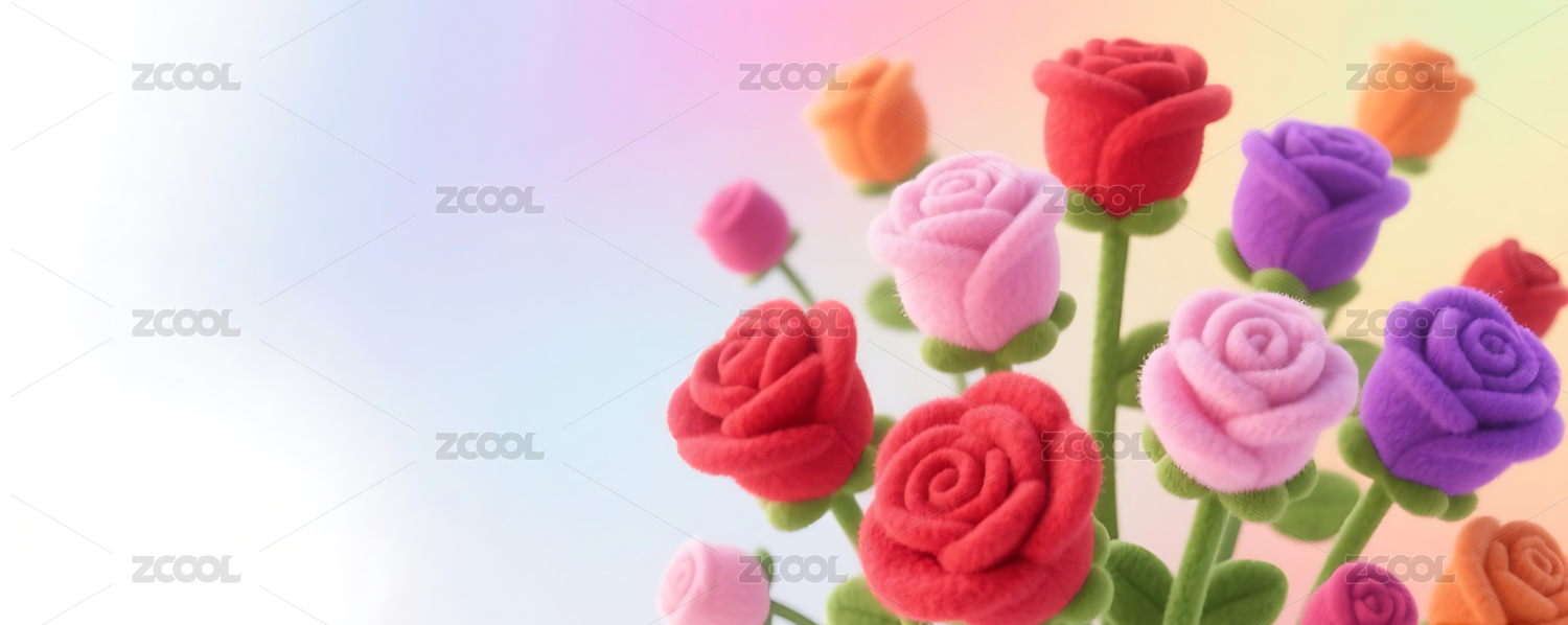 羊毛毡,毛绒绒,毛茸茸,3D,背景,渐变,彩色,玫瑰花