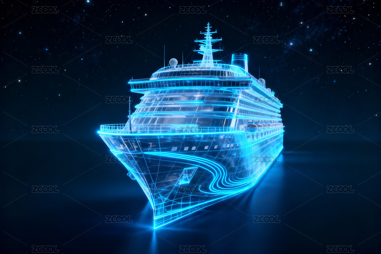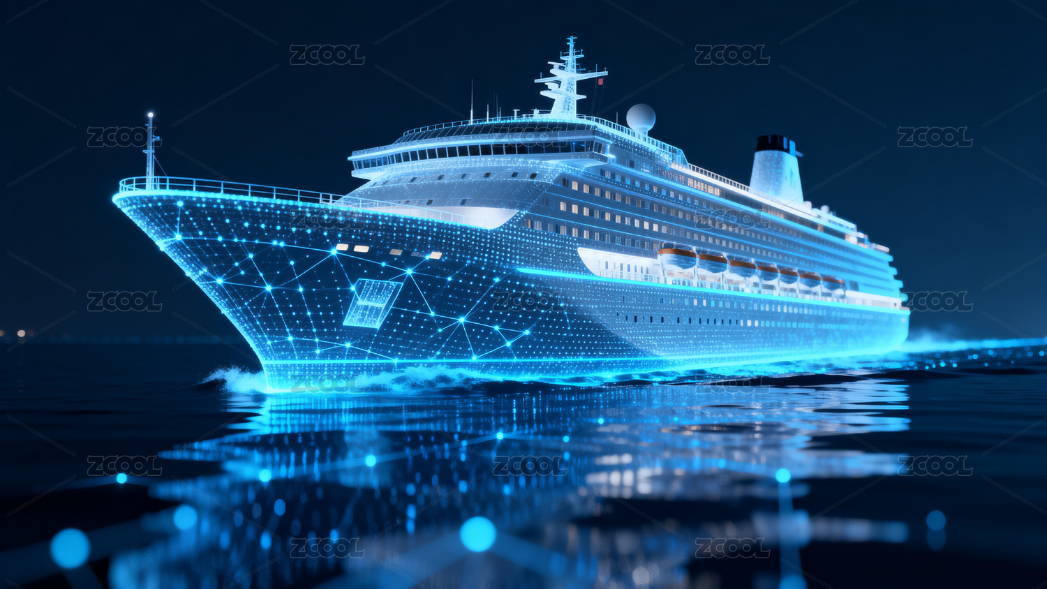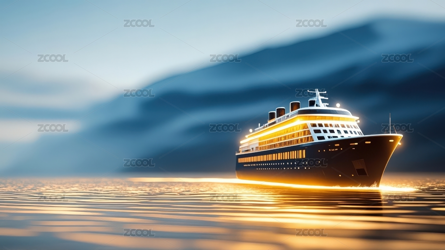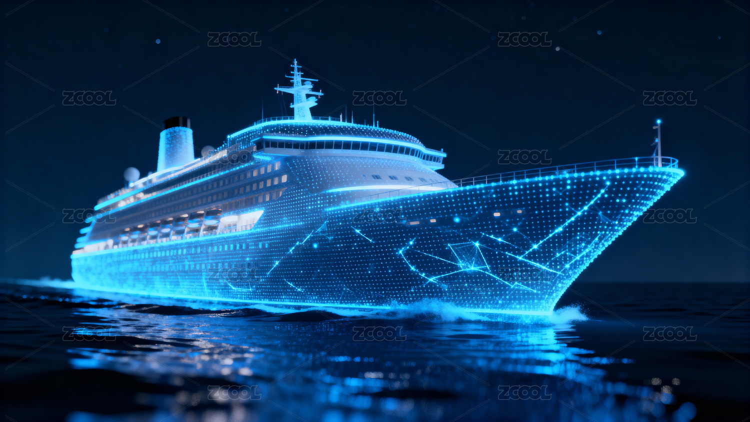蓝色光影中的豪华邮轮航行