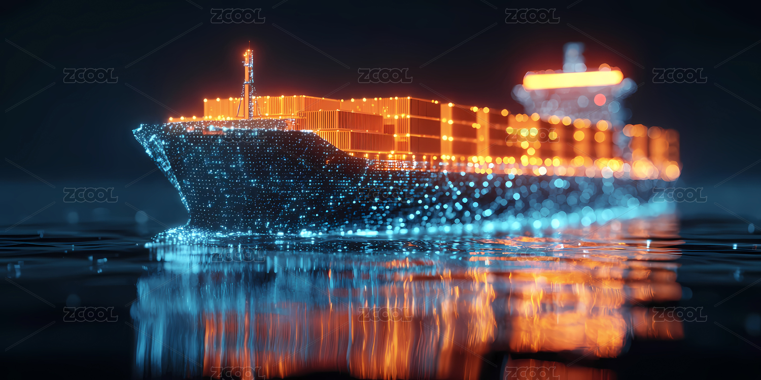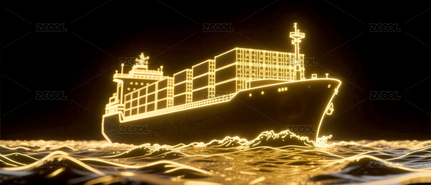 货轮发光感海洋航行场景