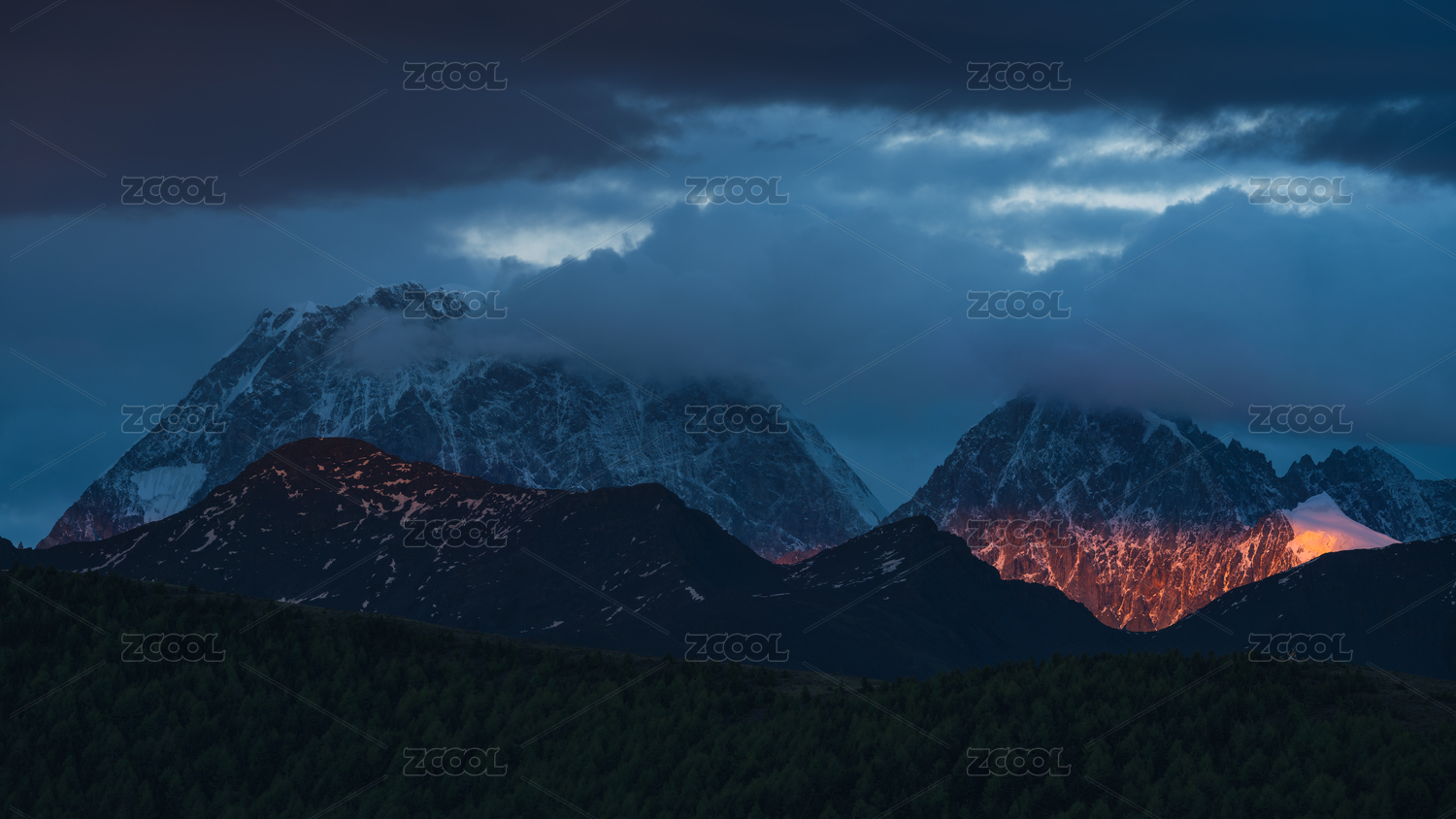 中国四川甘孜州高尔寺贡嘎雪山风光
