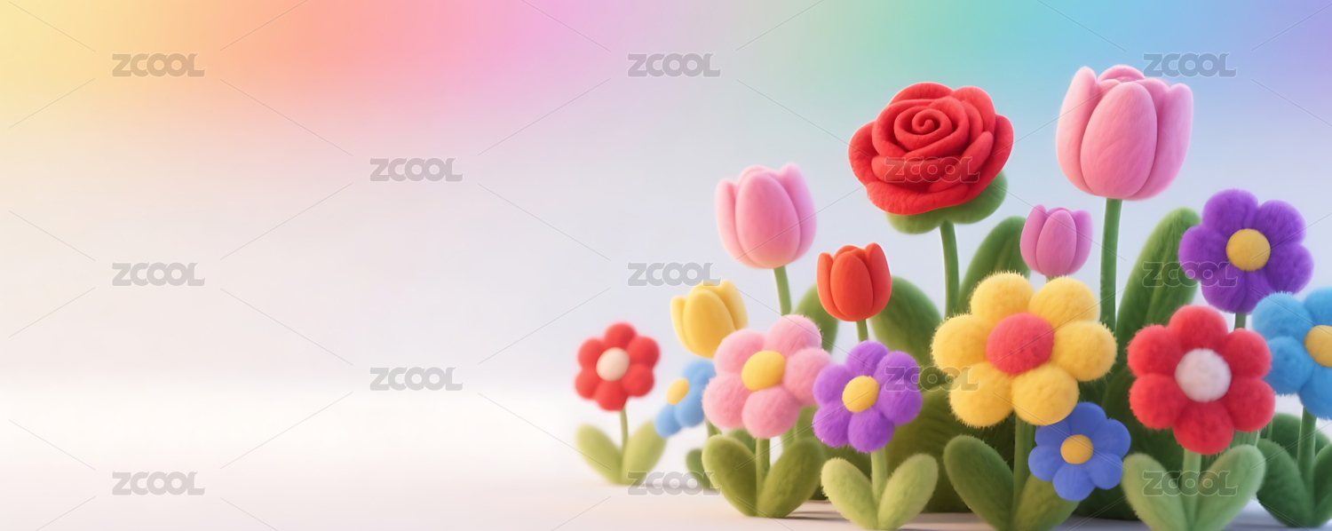 羊毛毡,毛绒绒,毛茸茸,3D,背景,渐变,彩色,花,花丛,植物