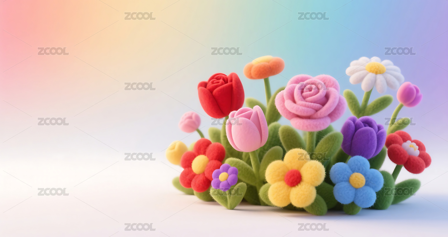 羊毛毡,毛绒绒,毛茸茸,3D,背景,渐变,彩色,花,花丛,植物
