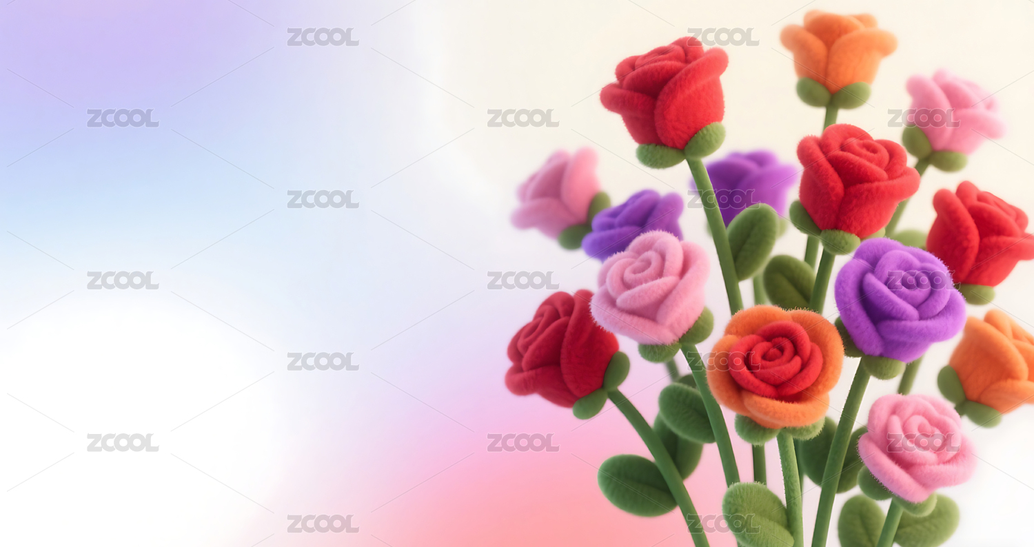 3D羊毛毡毛绒绒质感玫瑰花背景