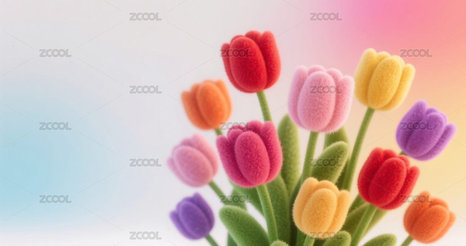 3D羊毛毡毛绒绒质感郁金香花背景