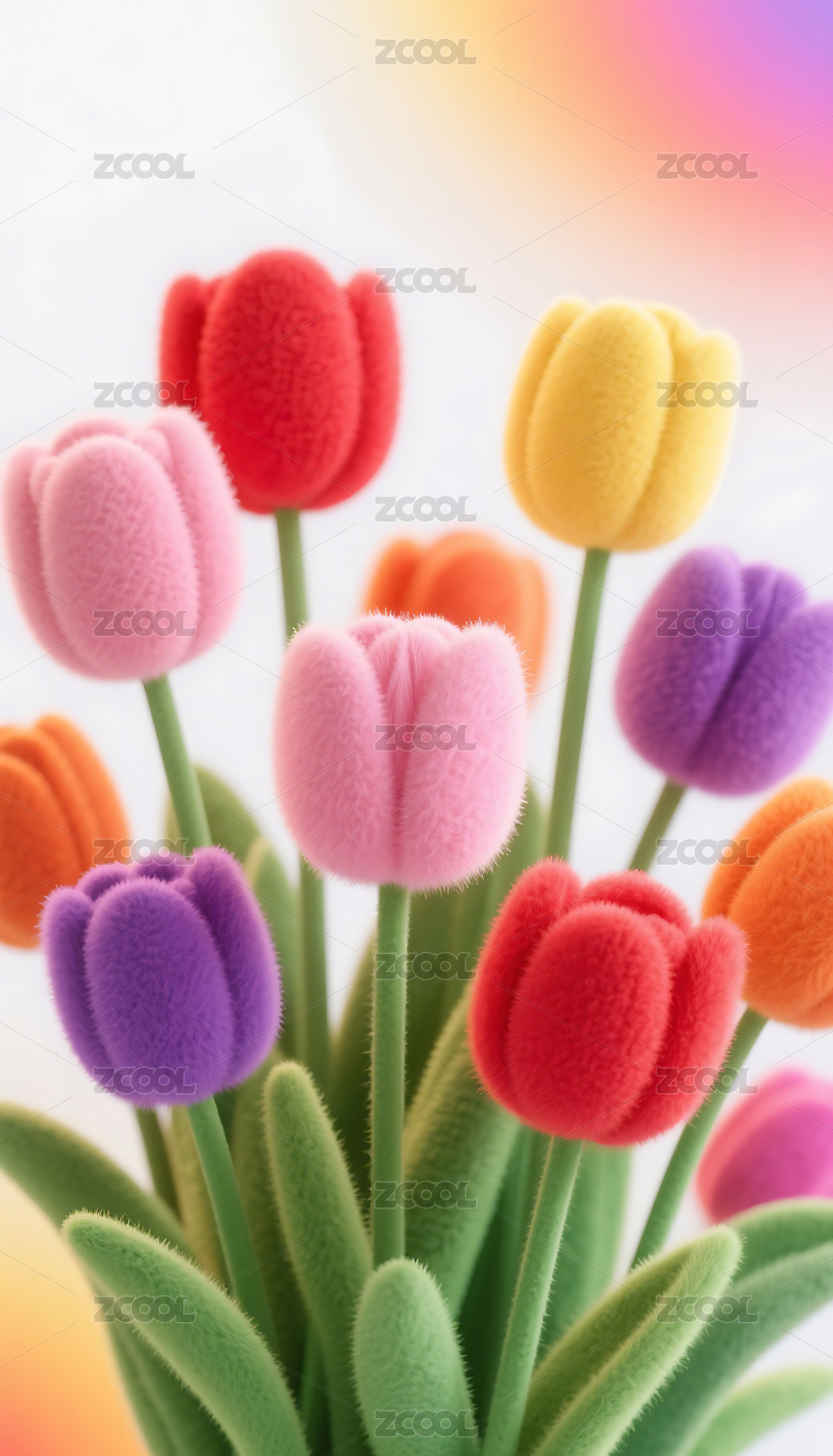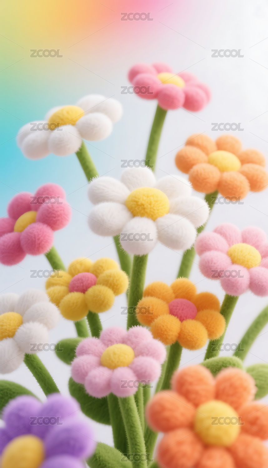 羊毛毡,毛绒绒,毛茸茸,3D,背景,渐变,彩色,花,花丛,植物