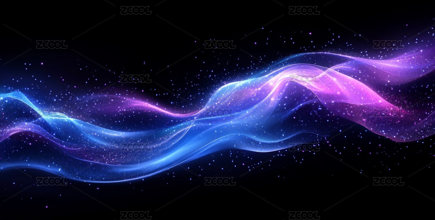 蓝紫波浪光带与星空呈现梦幻神秘效果