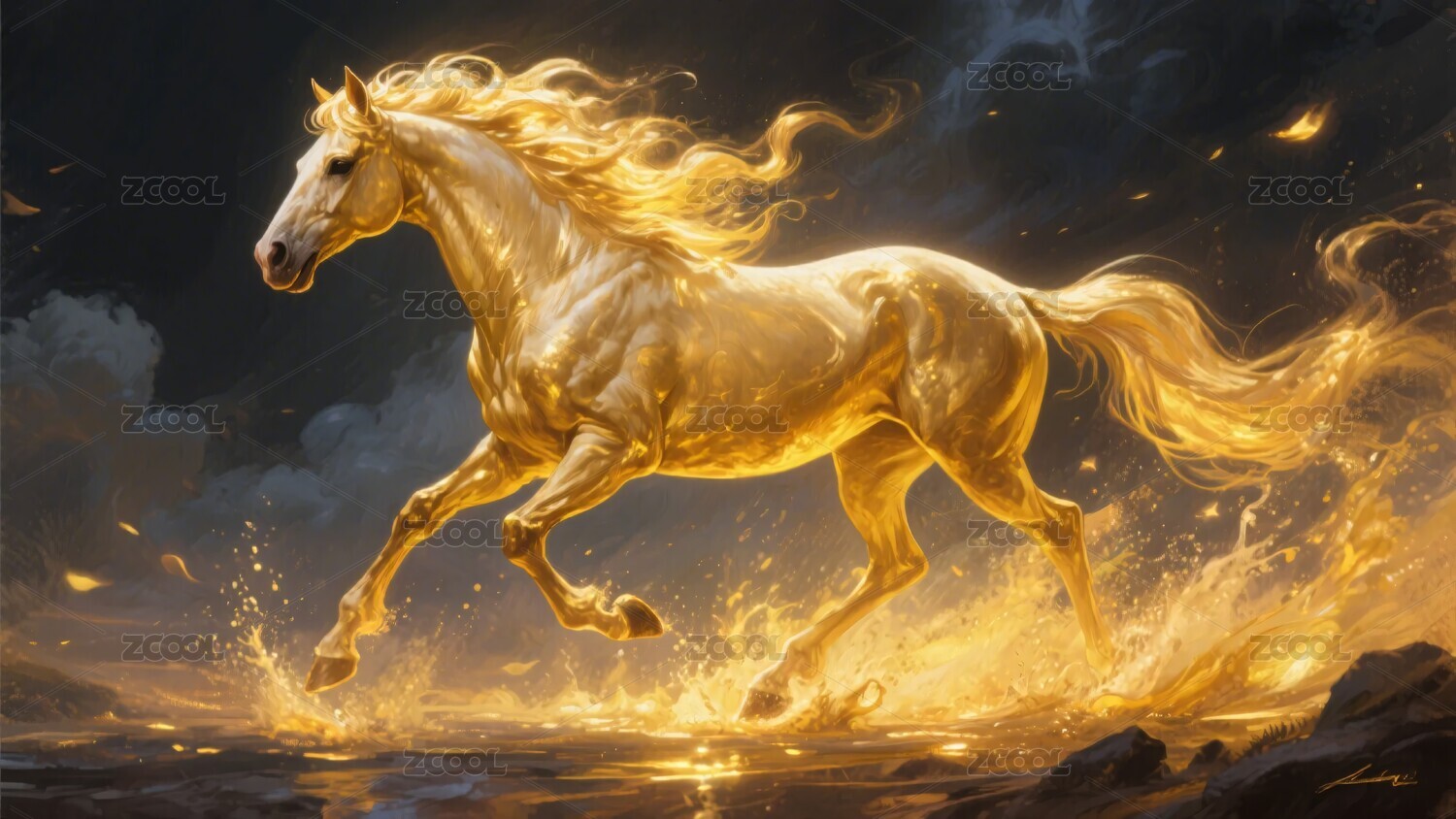 中国风金色汗血宝马奔跑的红色喜庆背景