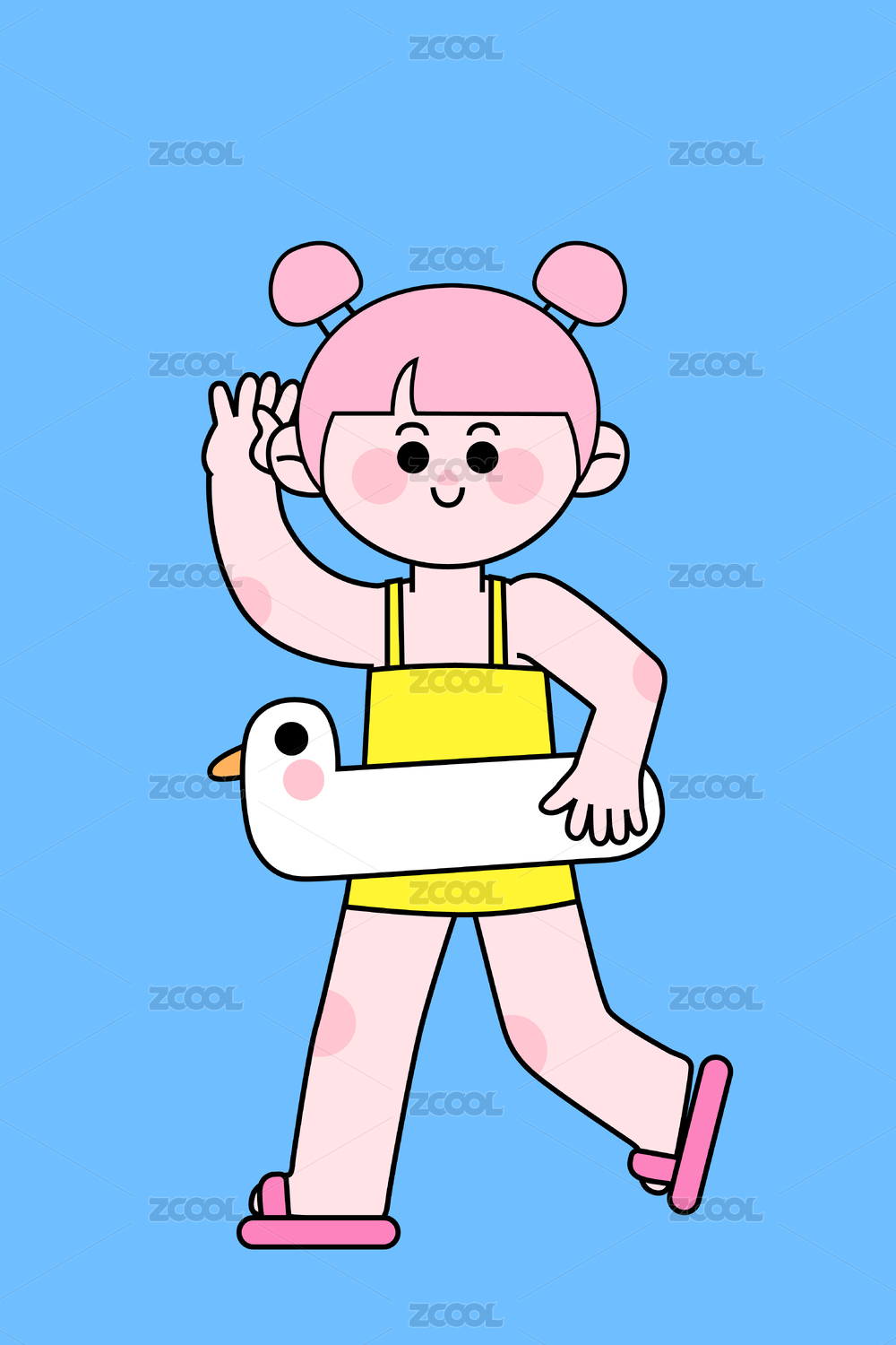 黄色少女时尚肖像大头照矢量扁平化设计背景