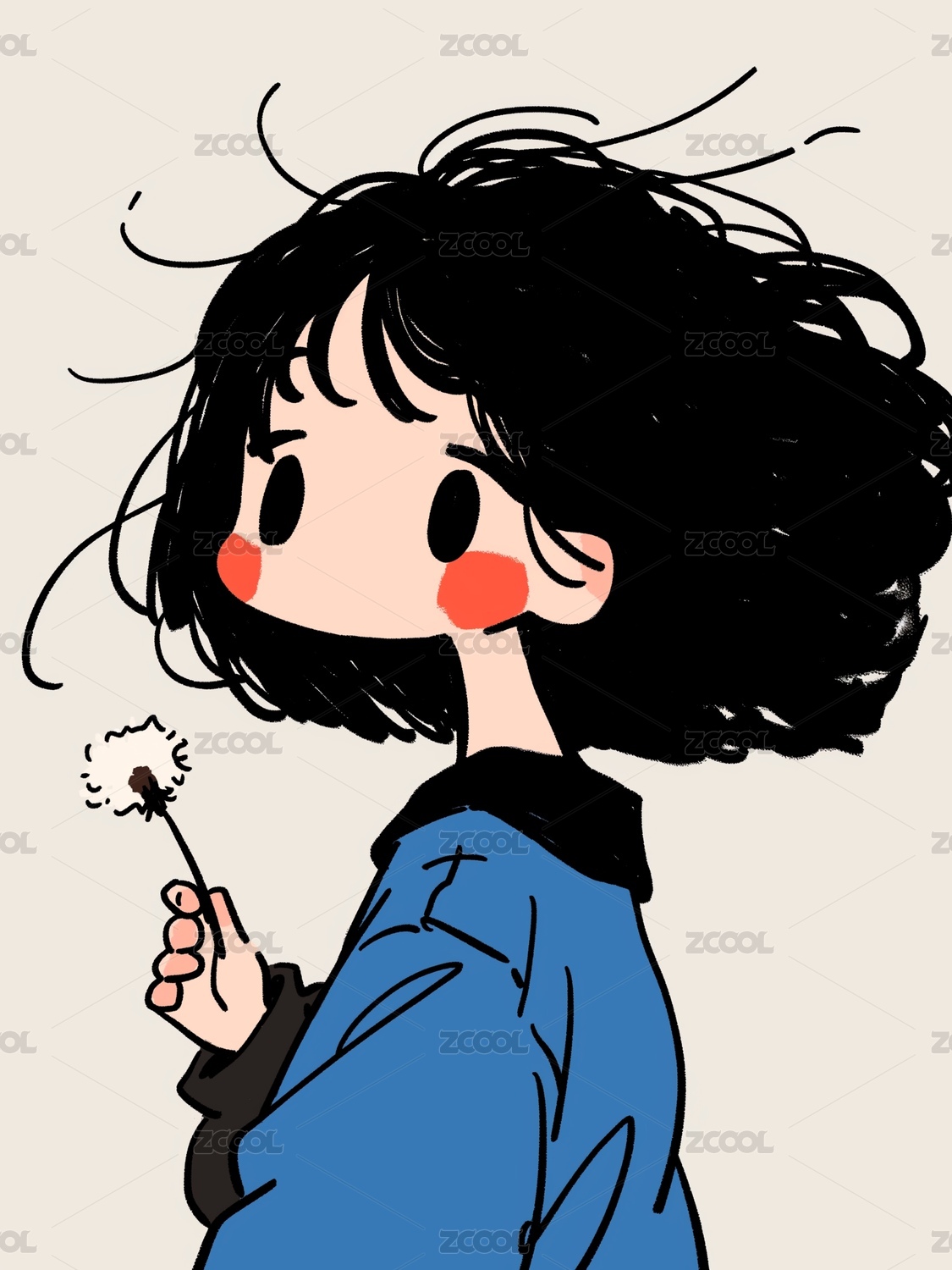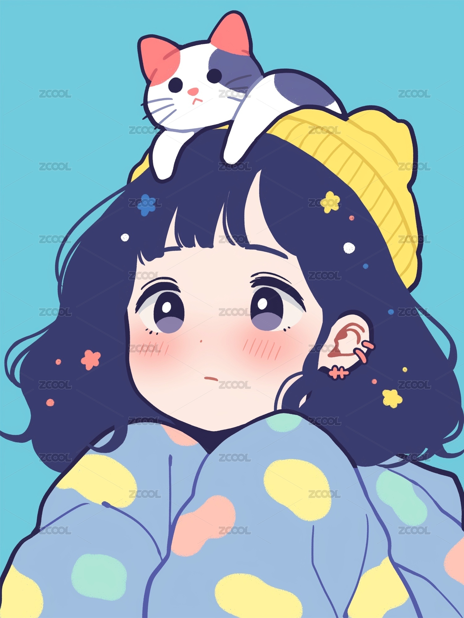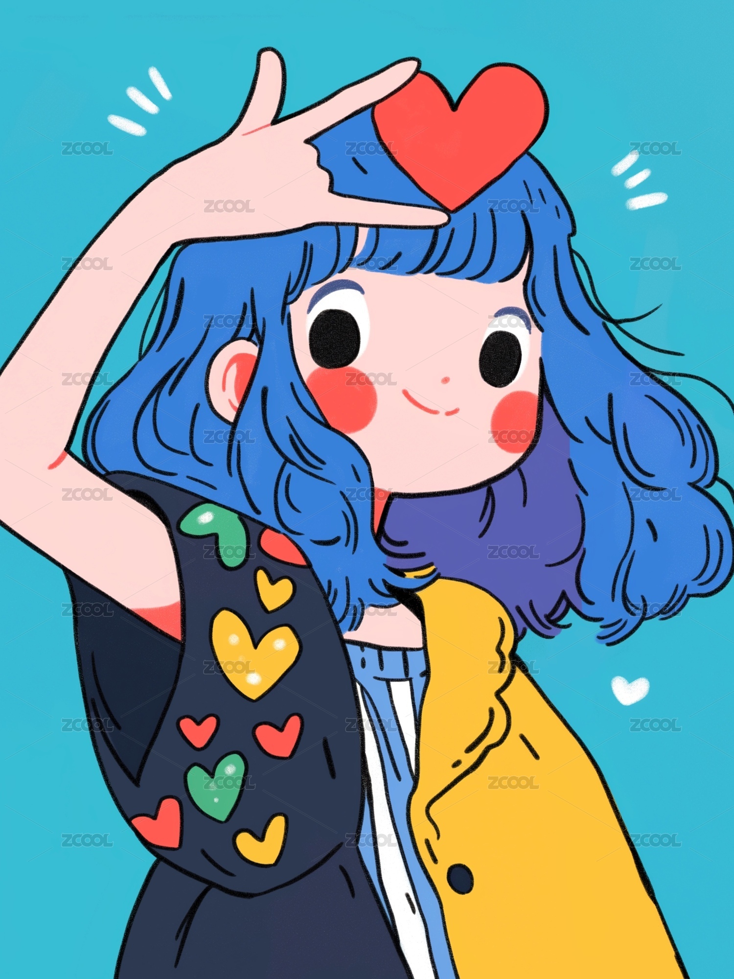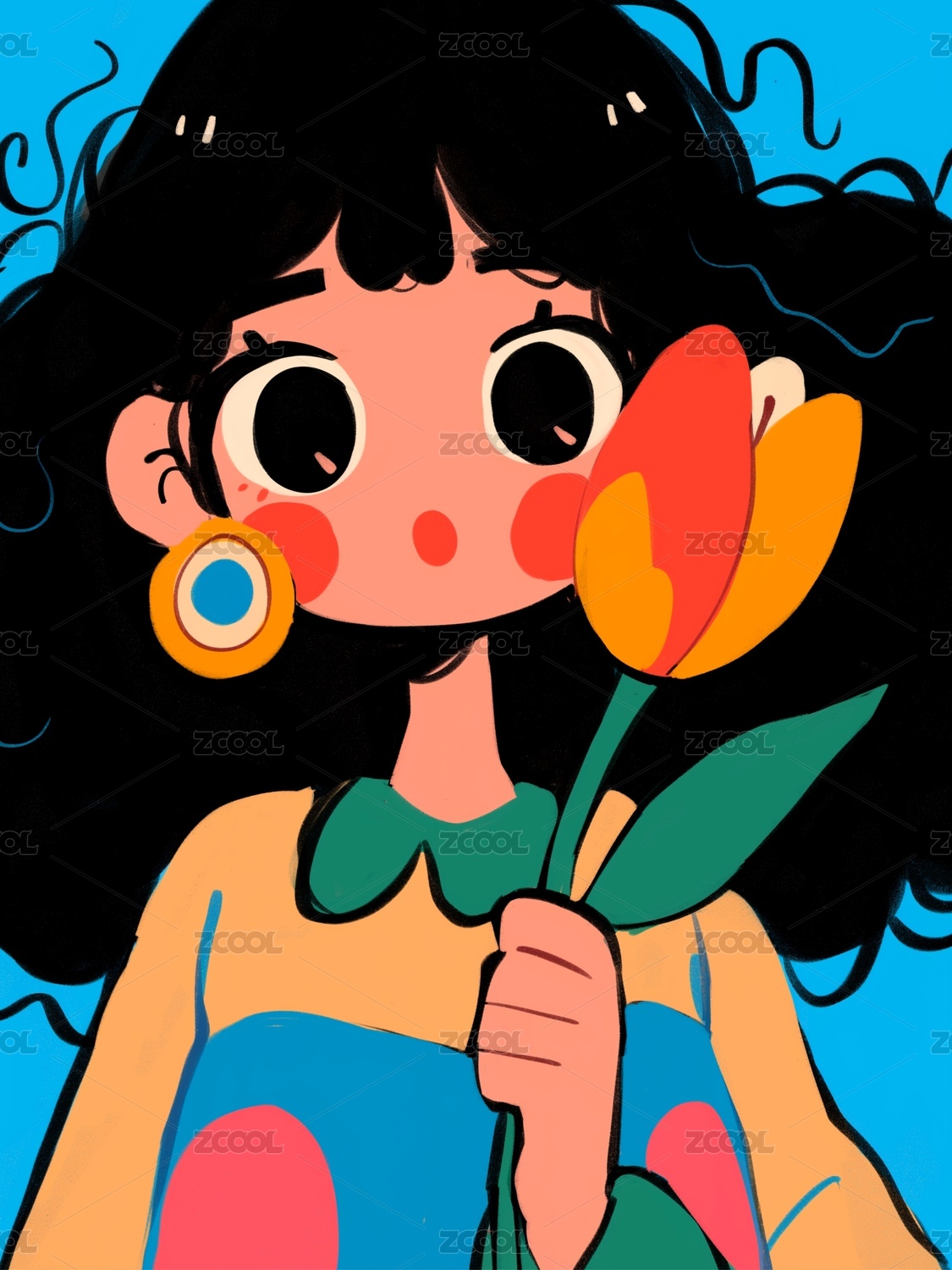 黄蓝少女时尚肖像大头照矢量扁平化设计背景