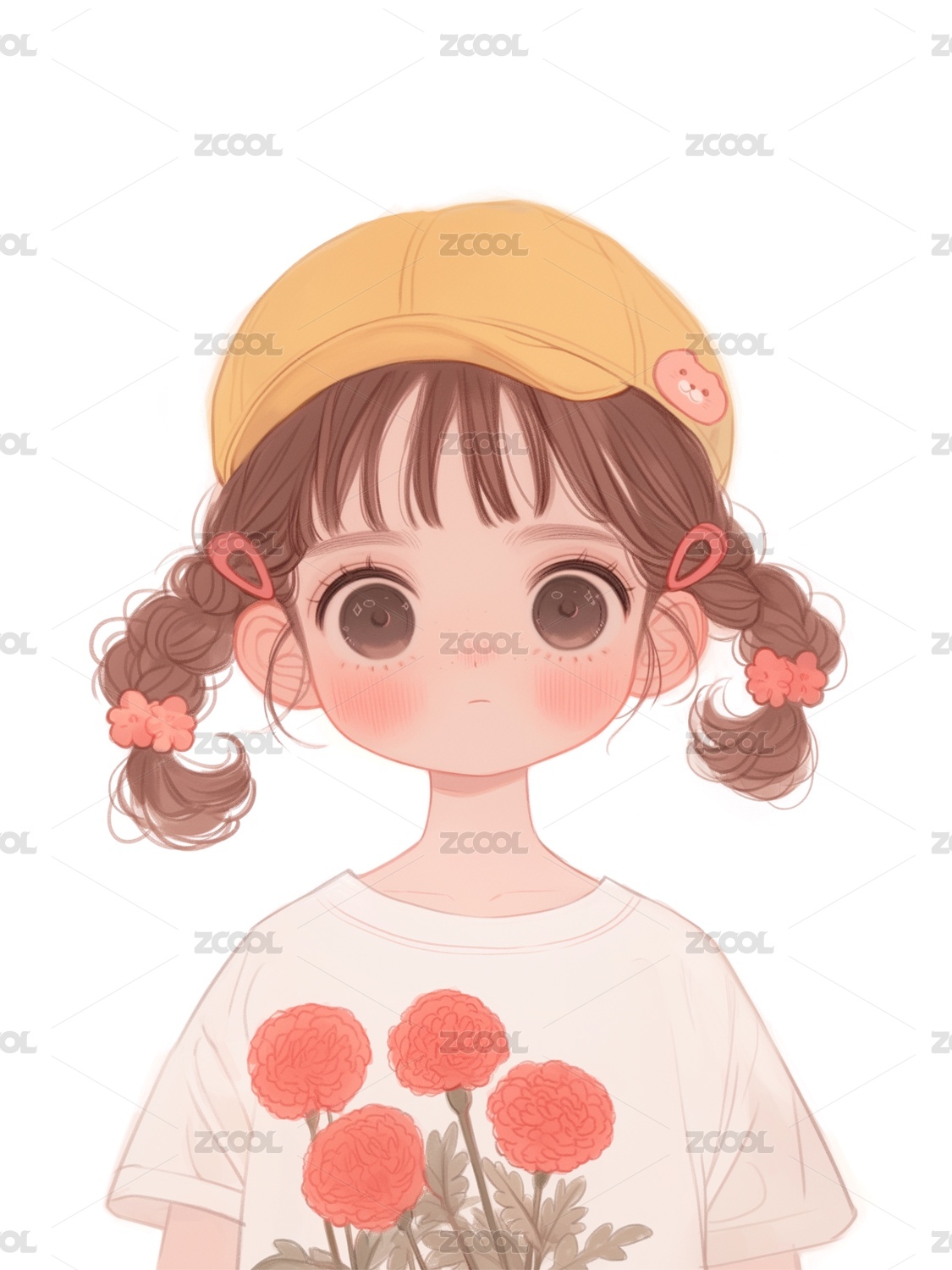 橙绿少女时尚肖像大头照矢量扁平化设计背景