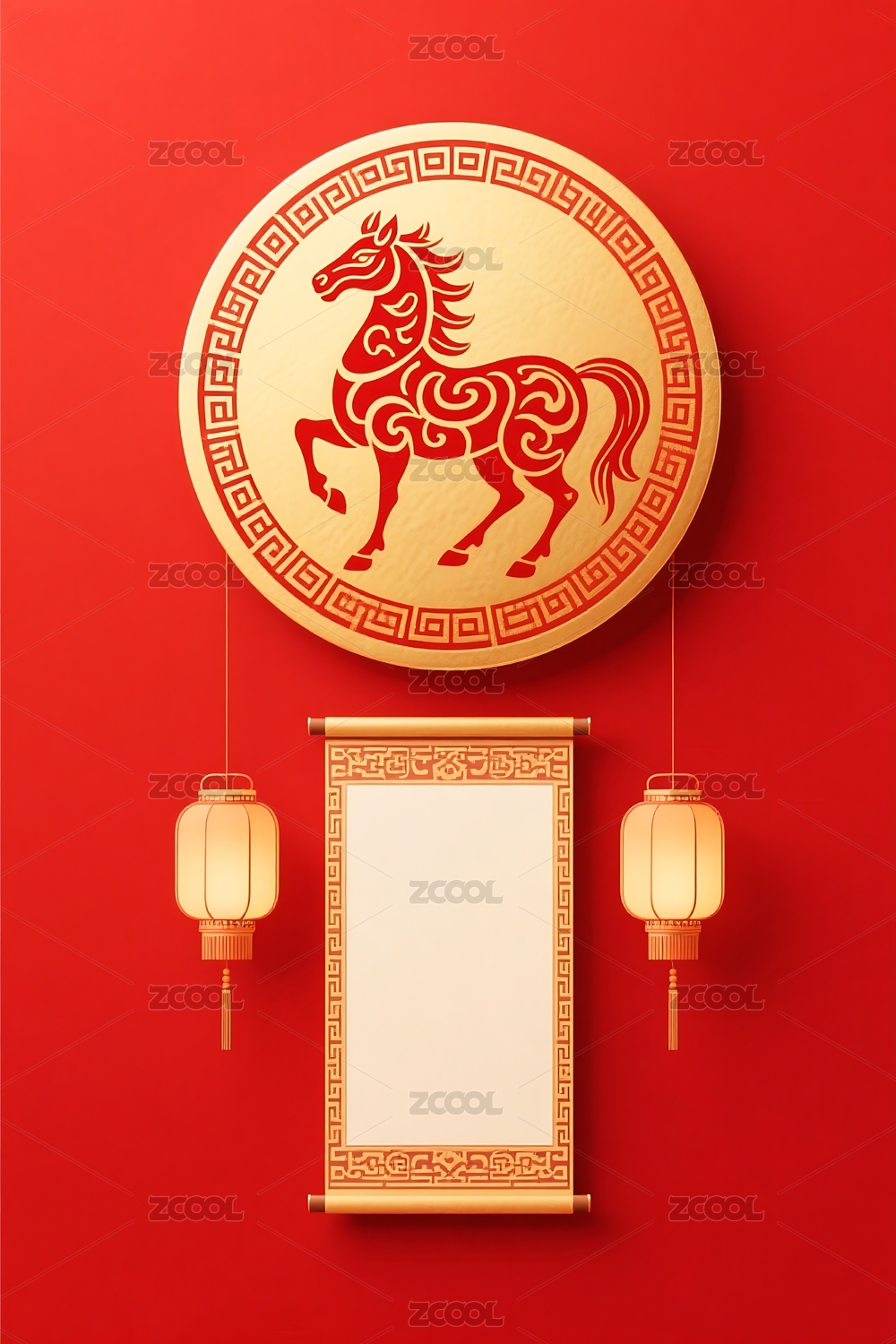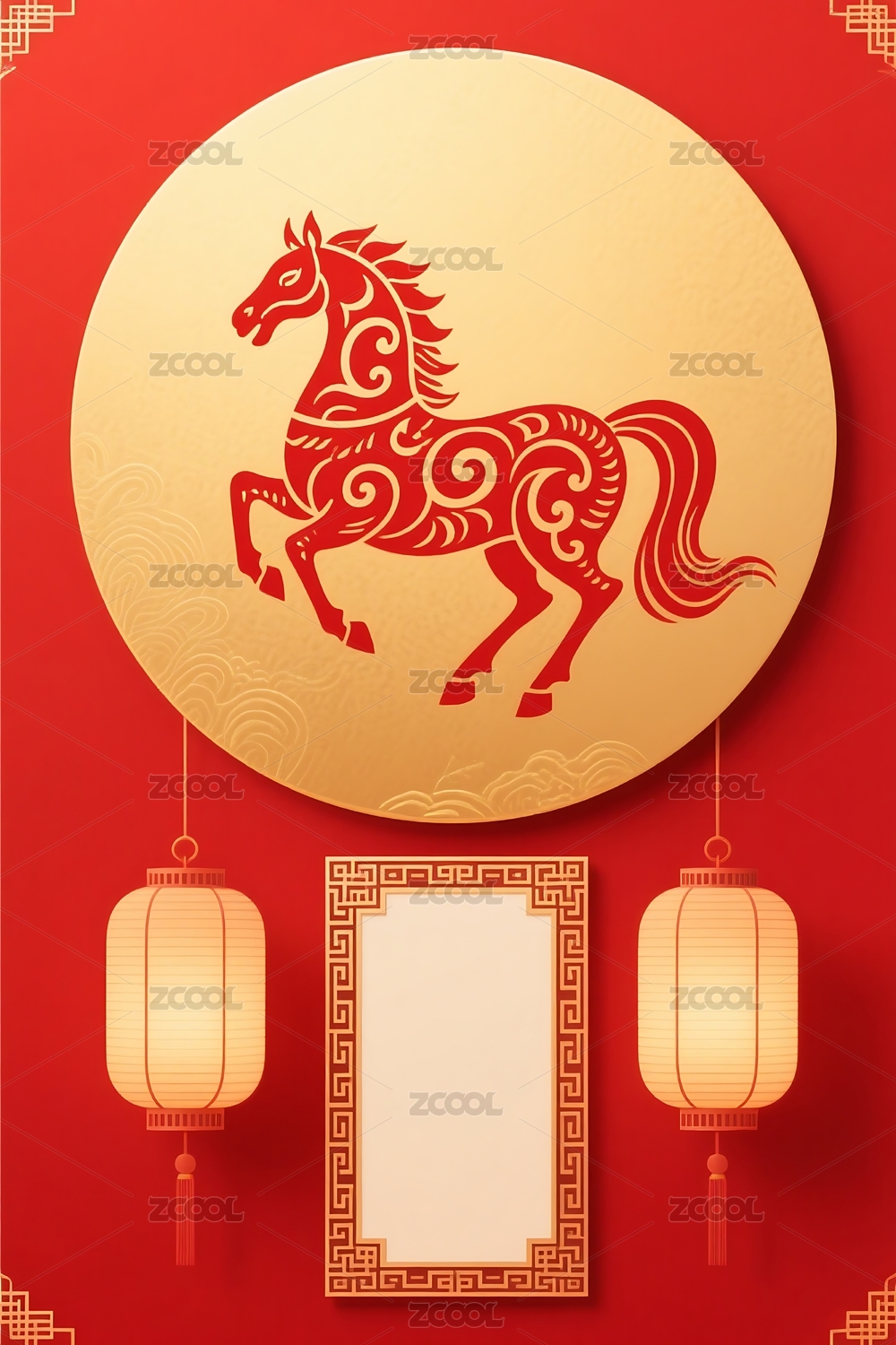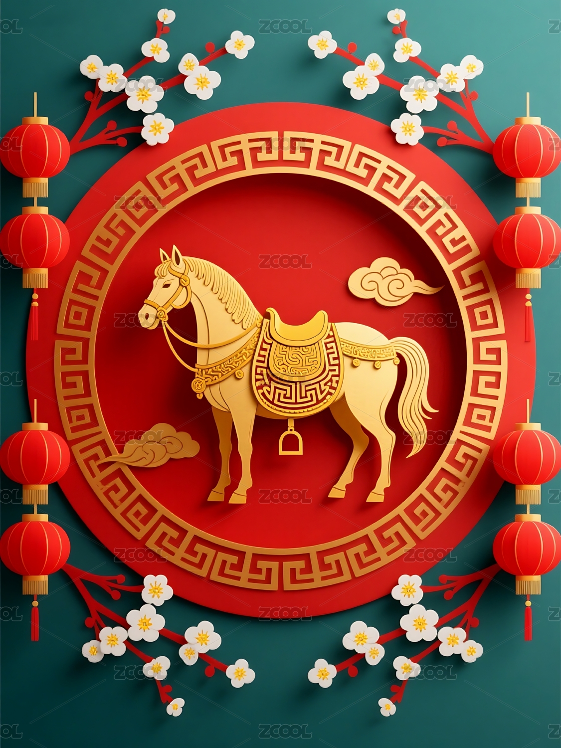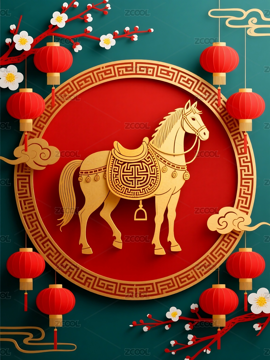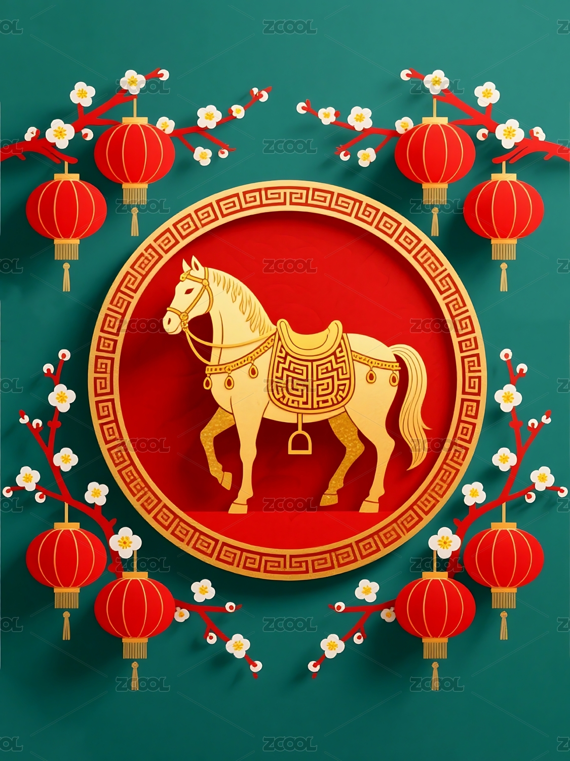 背景,设计,圆形,装饰,图案,云,红色,马,灯笼,梅花