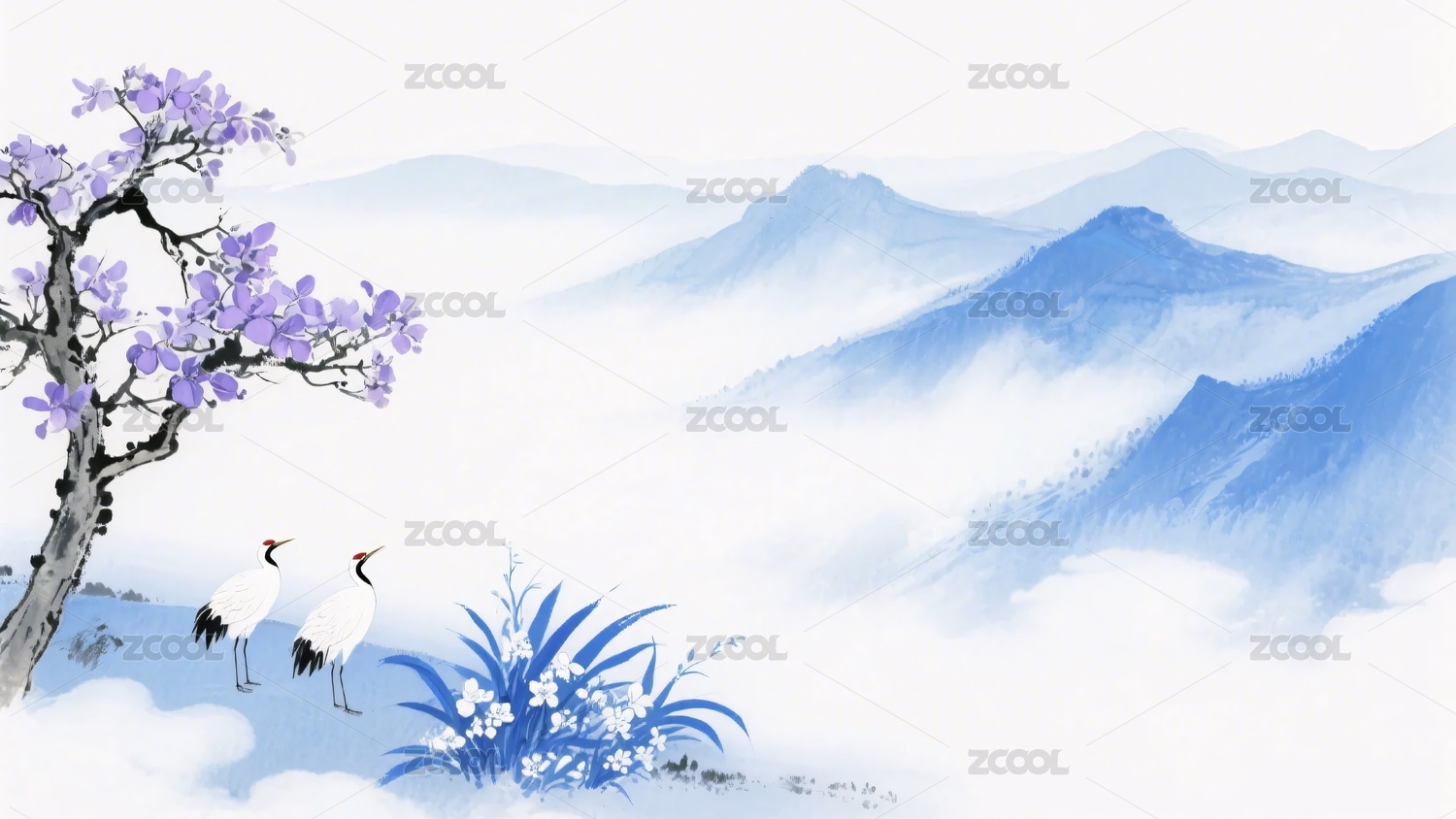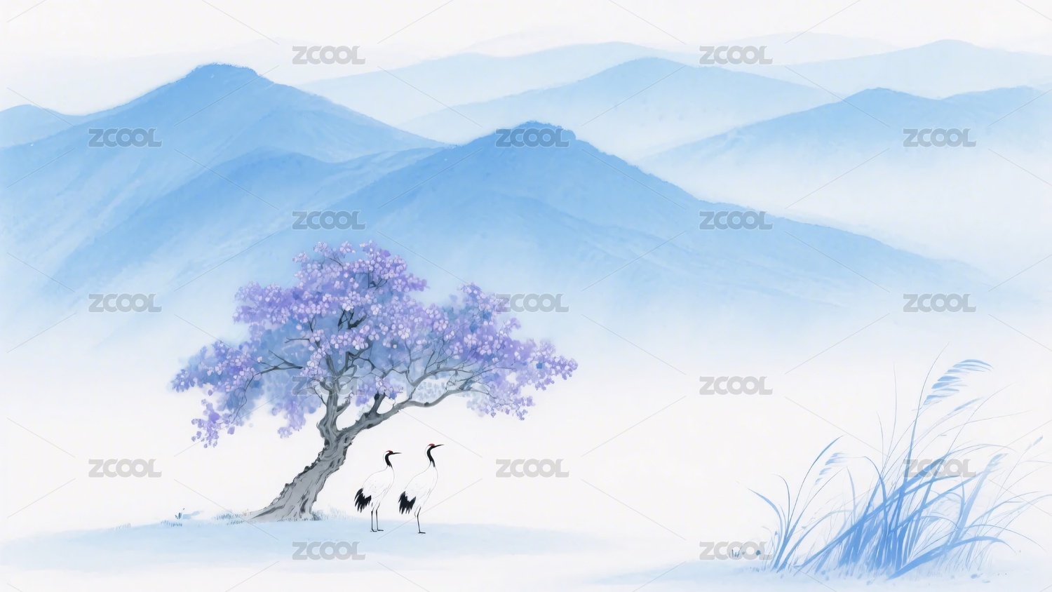 山水,插画,风景,蓝紫色,写意,自然,元素,画面,背景,矢量