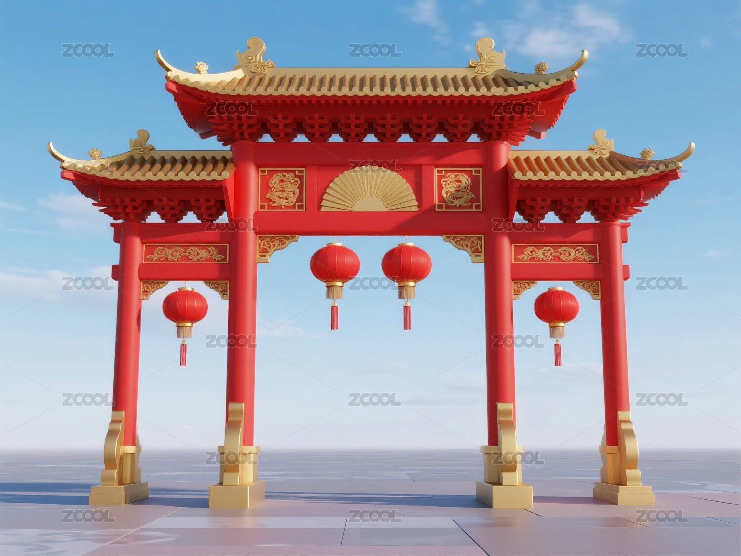 中式节日拱门与红灯笼