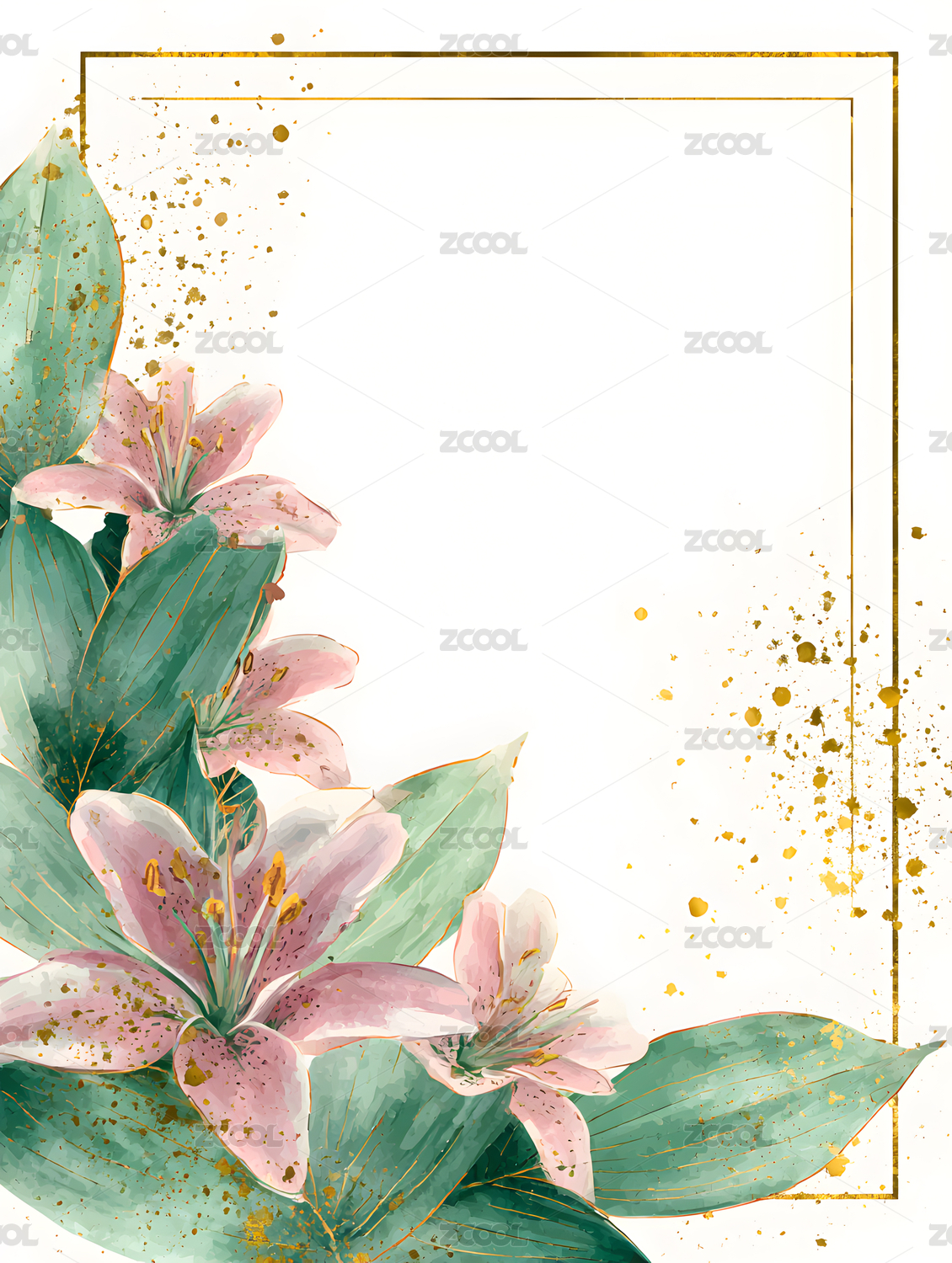 盛开,百合花,花卉,花丛,绿叶,边框,植物,印花