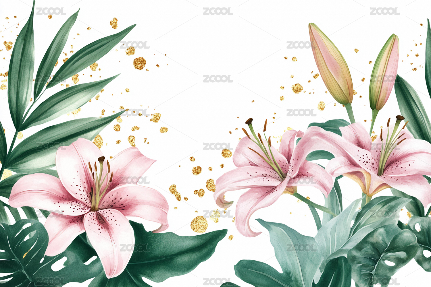 盛开,百合花,花卉,花丛,绿叶,边框,植物,印花