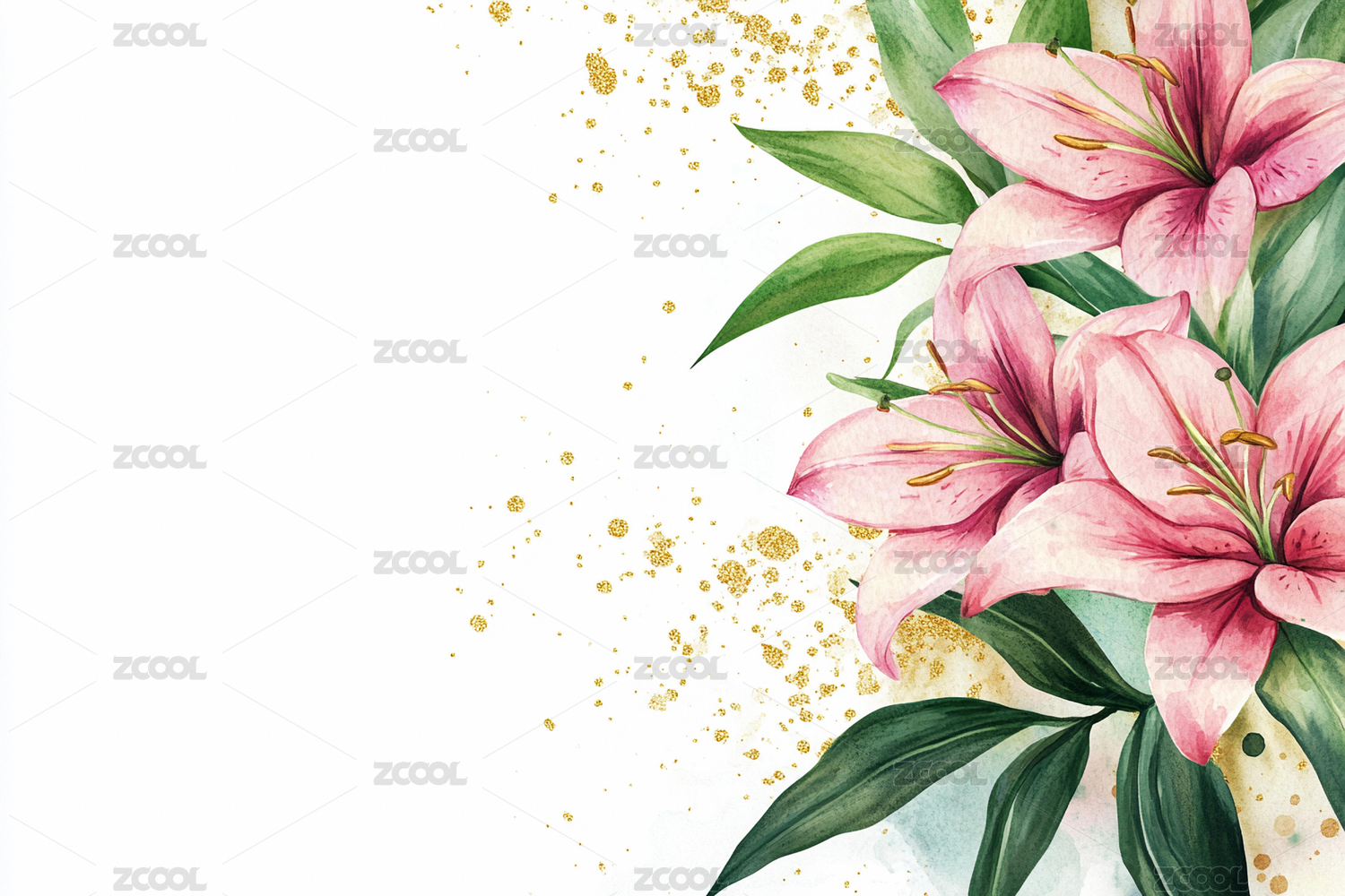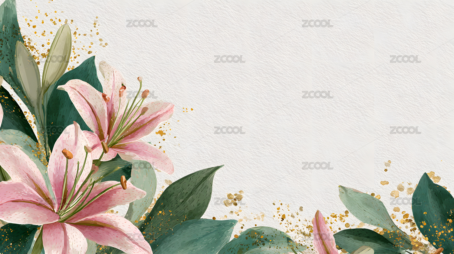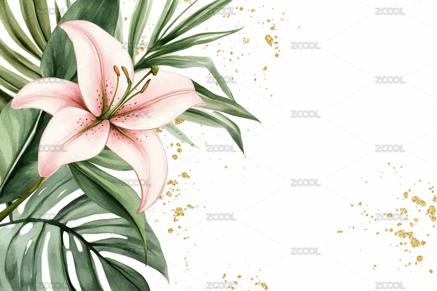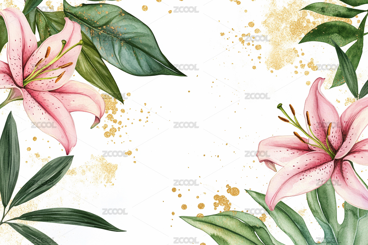 盛开,百合花,花卉,花丛,绿叶,边框,植物,印花