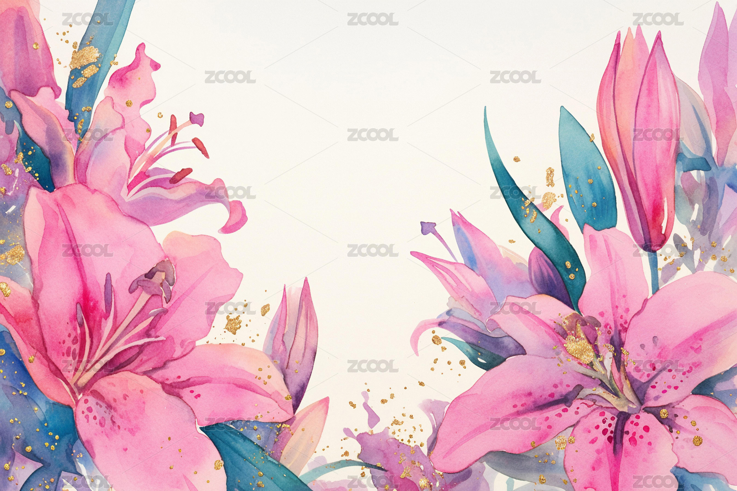 盛开,百合花,花卉,花丛,绿叶,边框,植物,印花