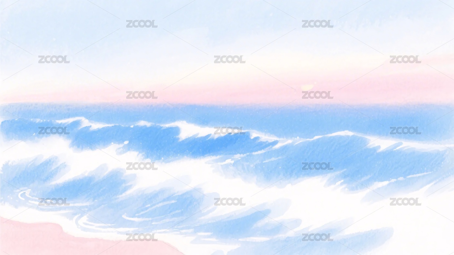 大海,天空,日出,云朵,插画,蓝色,风景,海面,阳光,自然