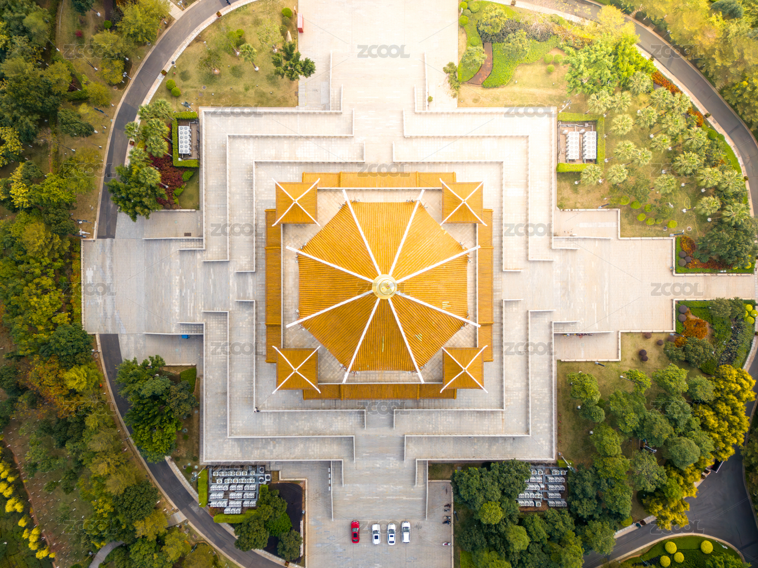 厦门市集美区集美市民公园俯瞰金色穹顶建筑