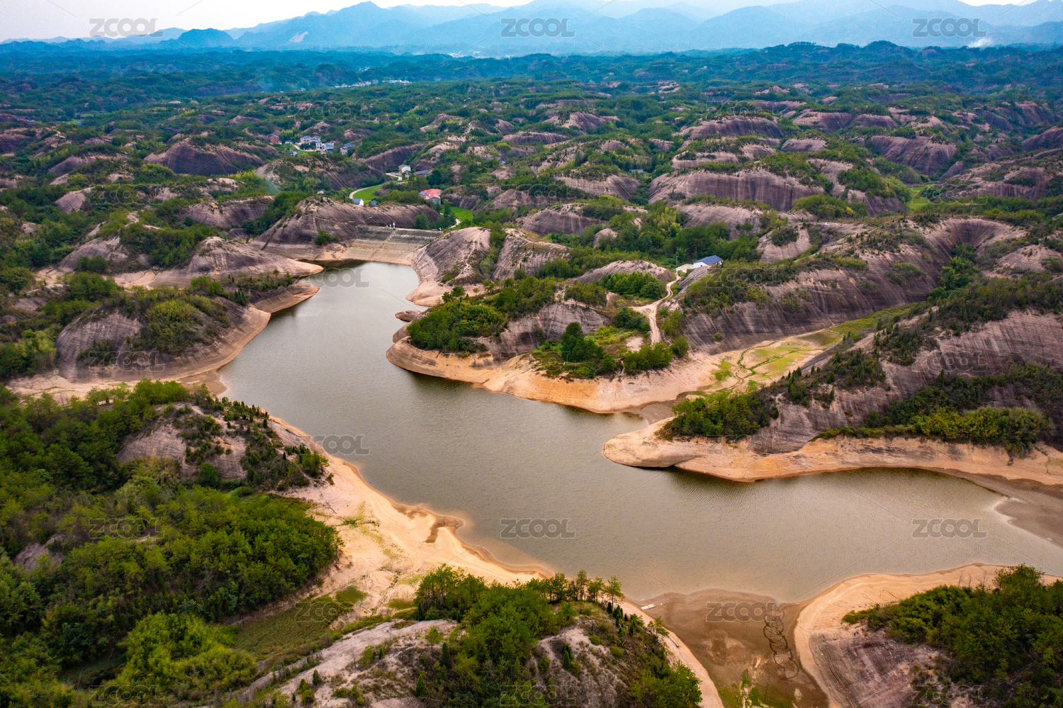 航拍湖南岳阳平江县石牛寨丹霞地貌