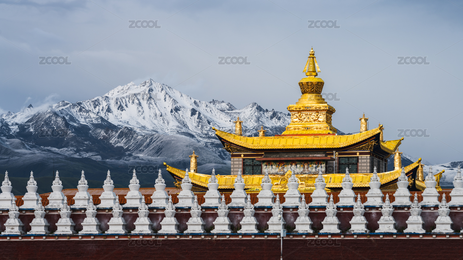 中国四川甘孜藏族自治州塔公寺和雅姆雪山