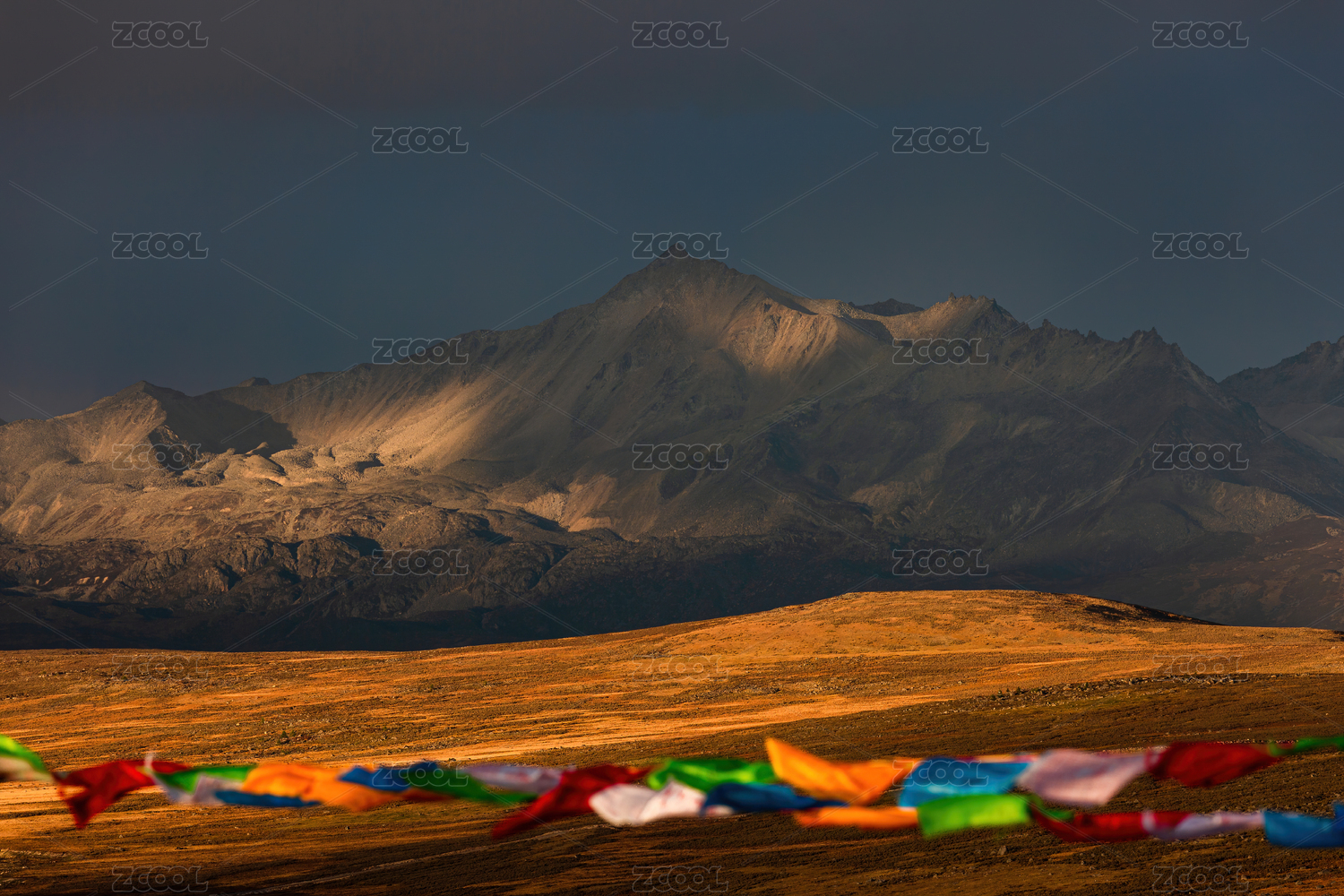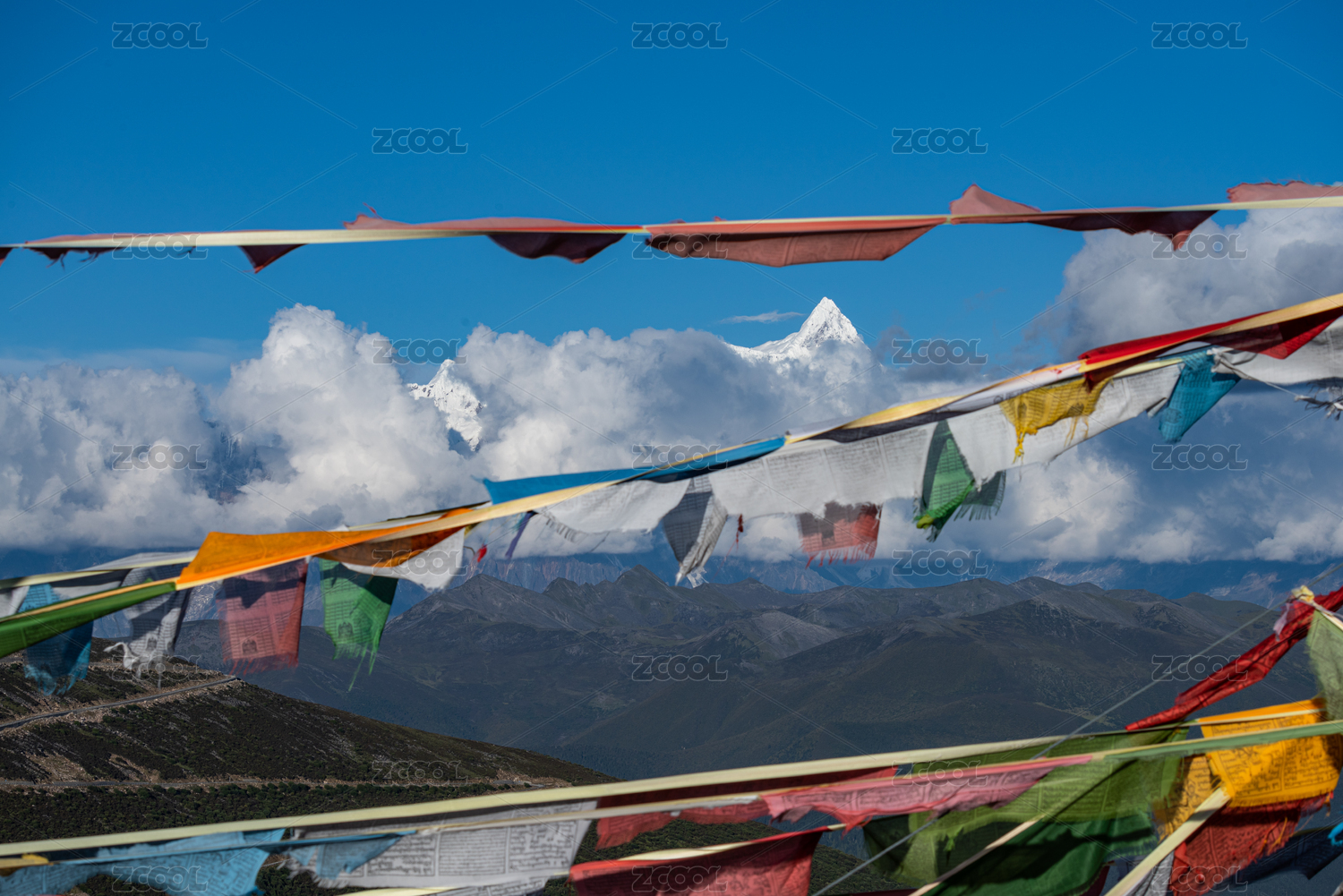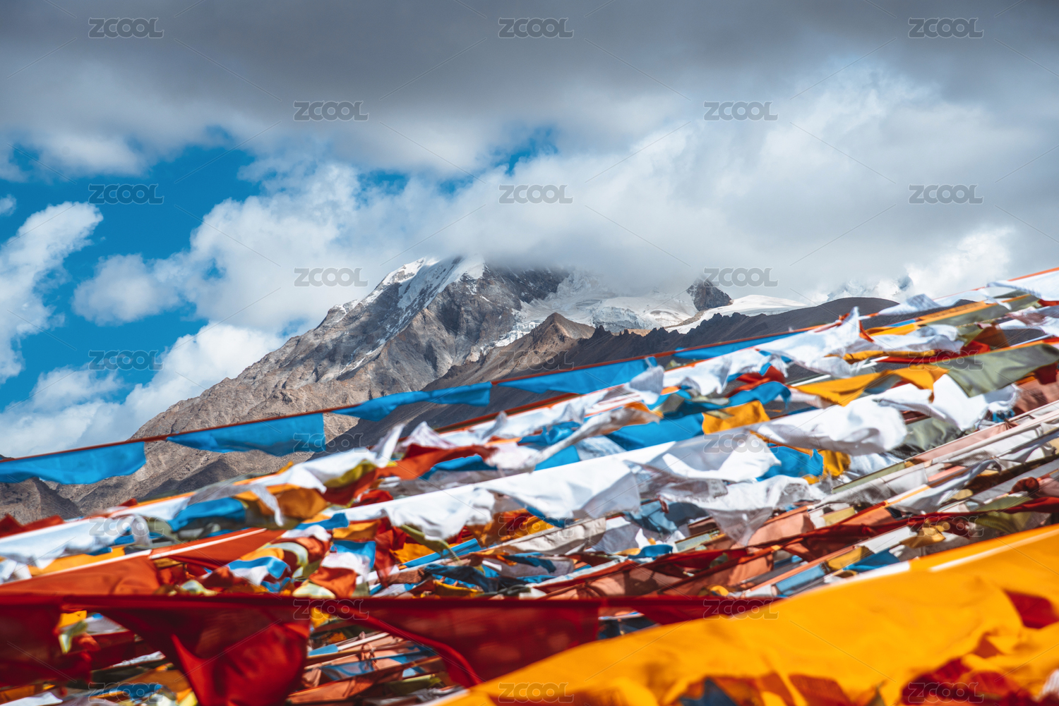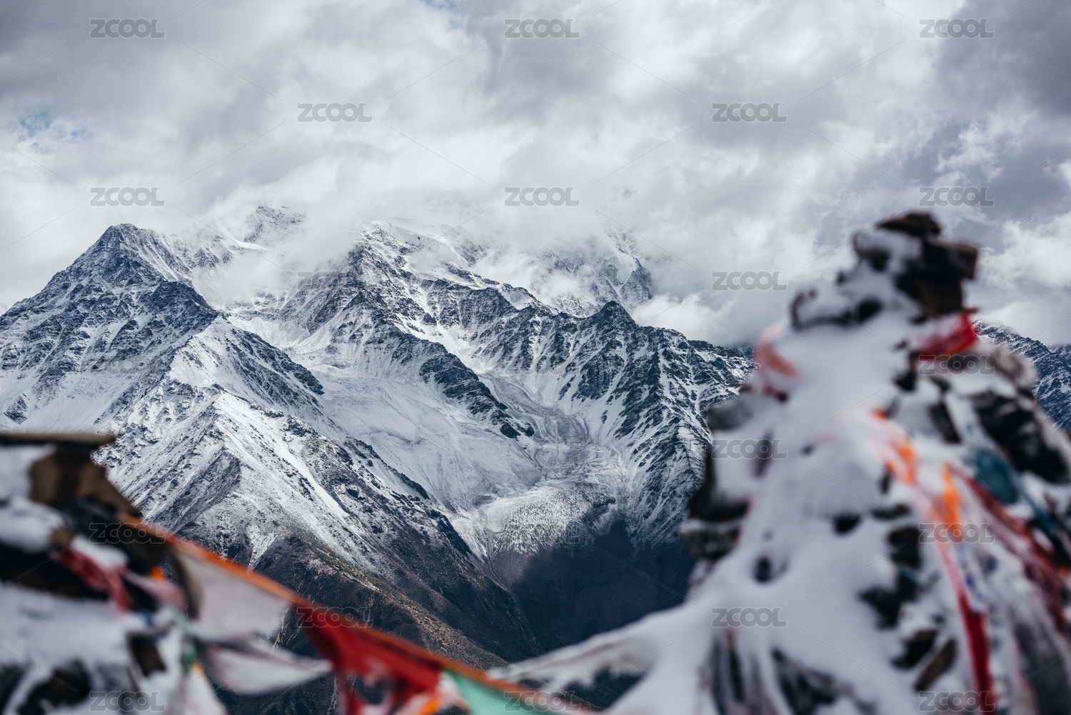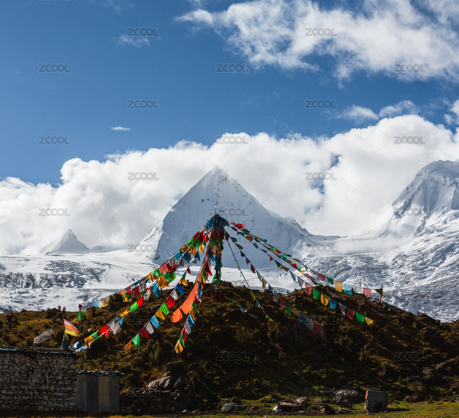 中国西藏自治区比如县萨普冰川山峰和经幡