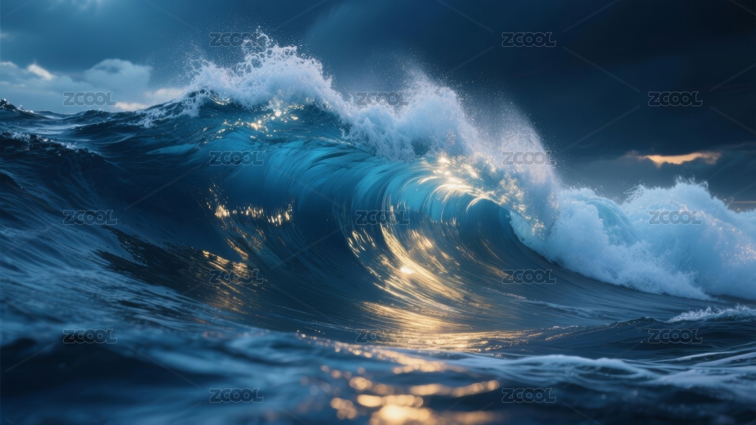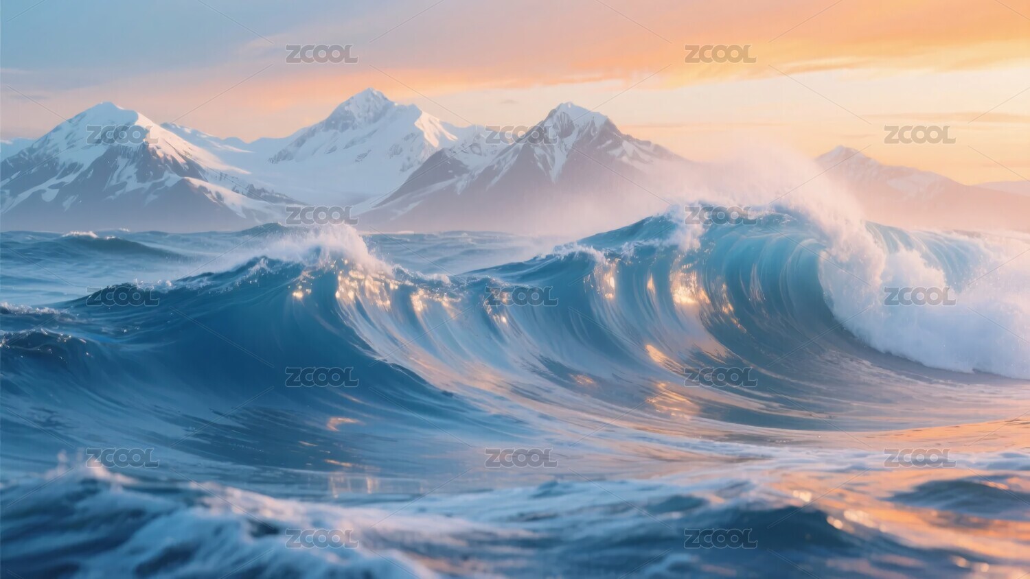 海浪,城市,夕阳,景观,天空,海水,自然,画面,美丽,插画