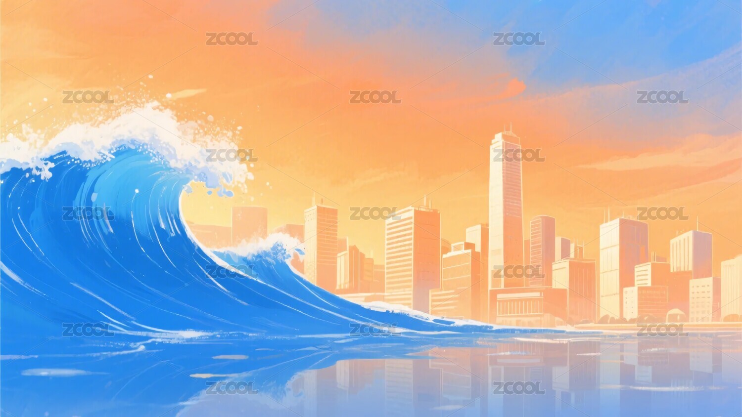 海浪与城市天际线梦幻景象