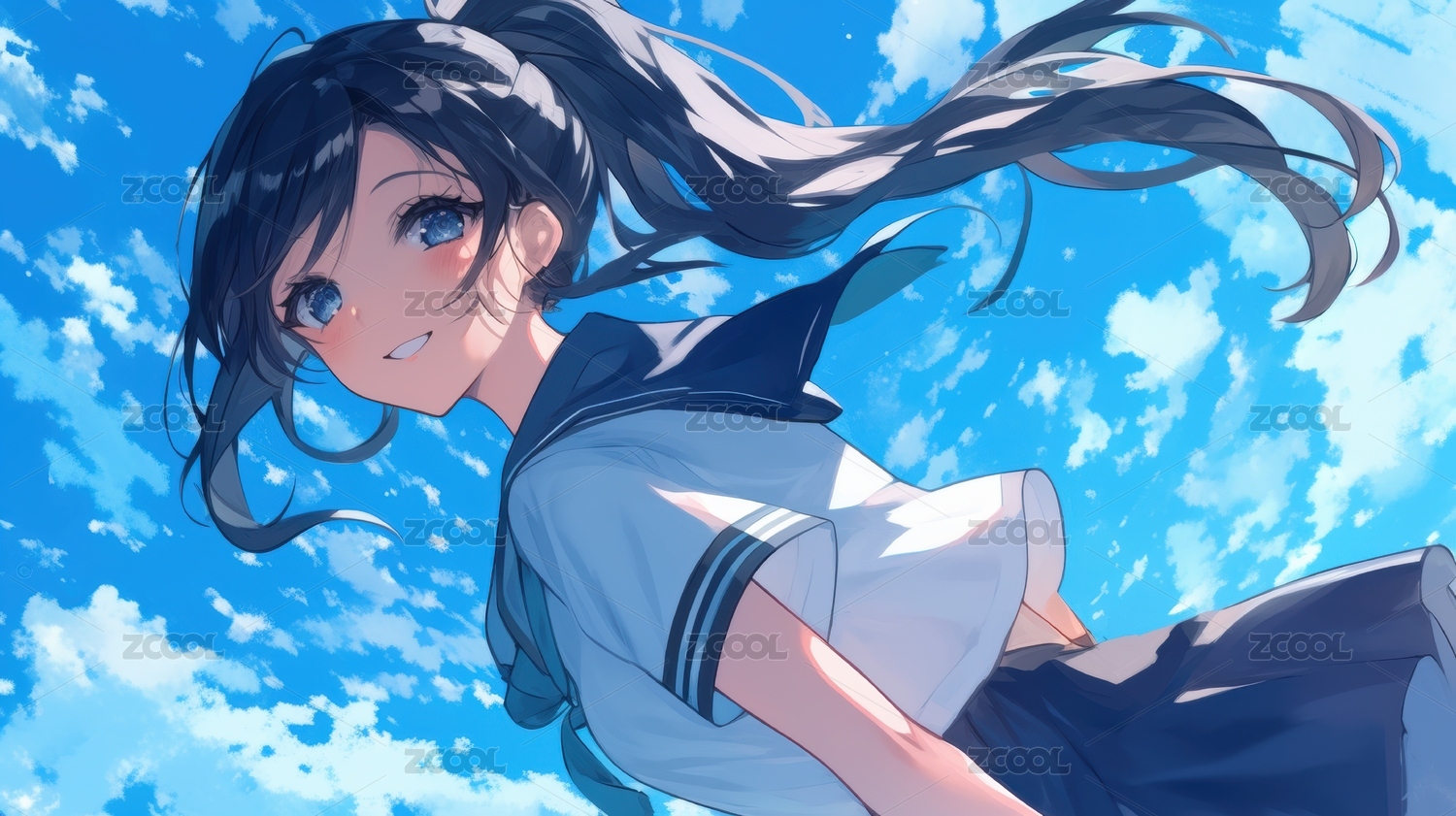 可爱的动漫女孩缤纷的色彩壁纸背景