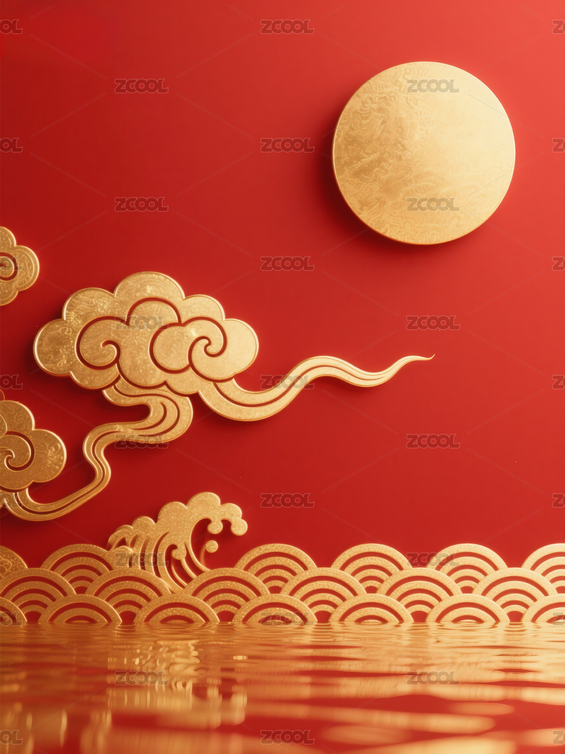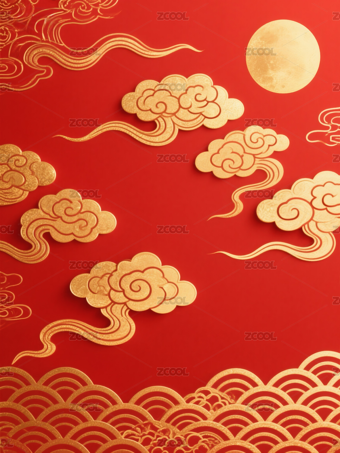 红色背景上的金色祥云