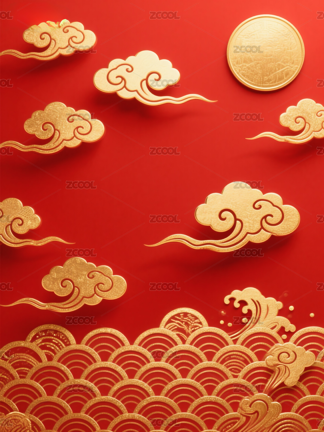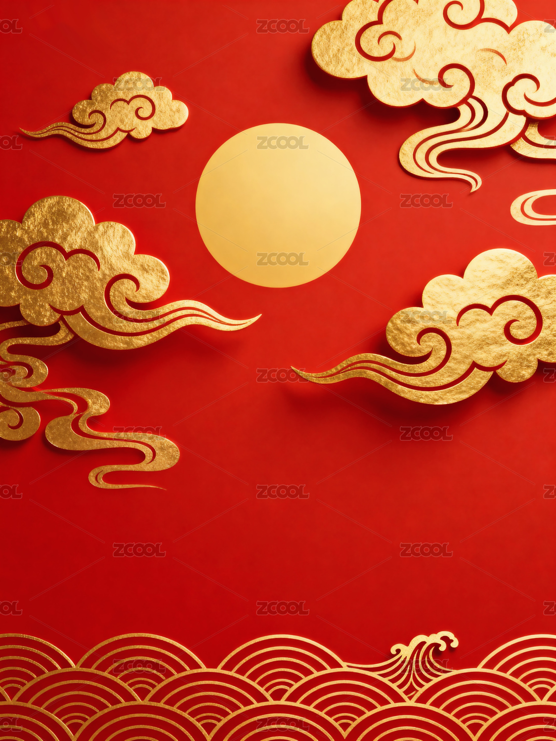 金色祥云红背景节日海报