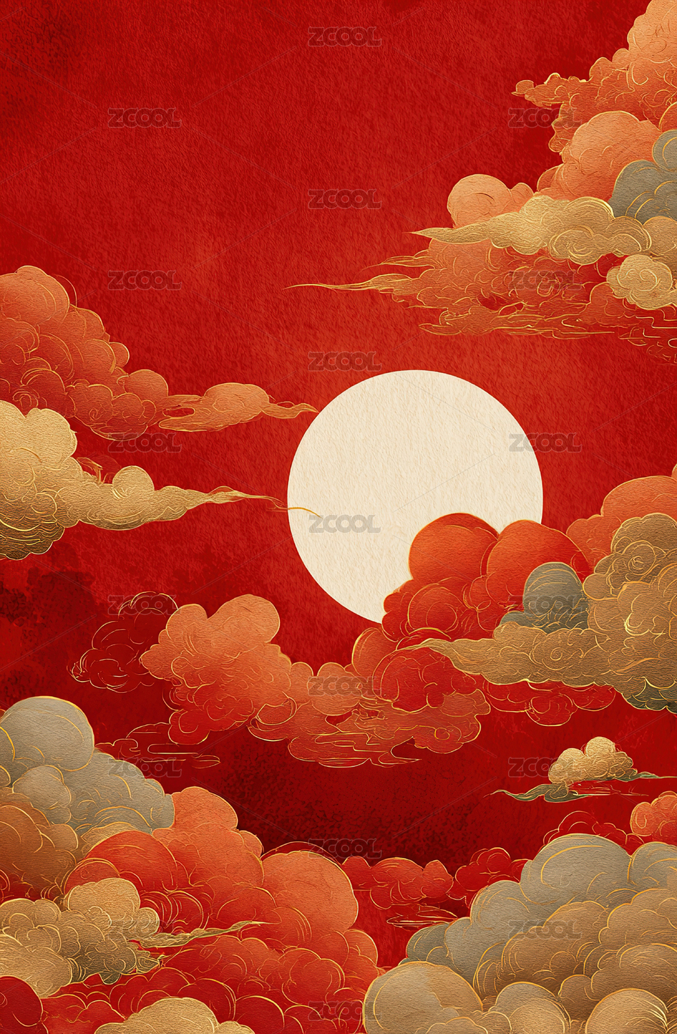 中国风红色祥云节日背景