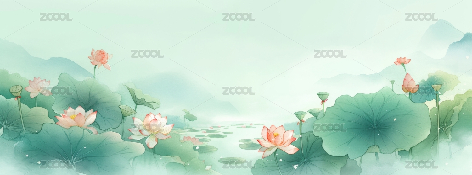国风淡雅荷花荷叶插画背景