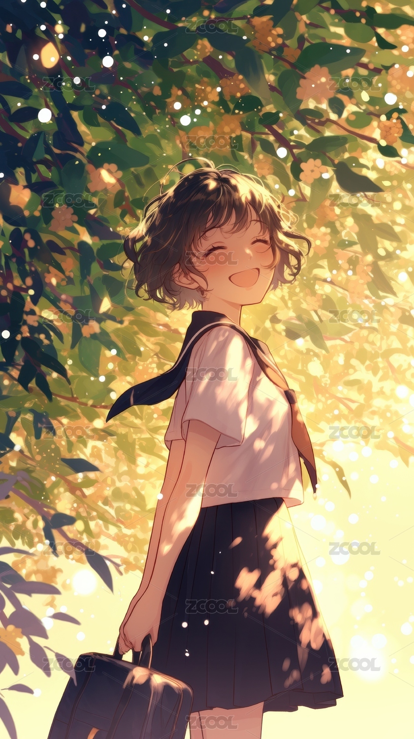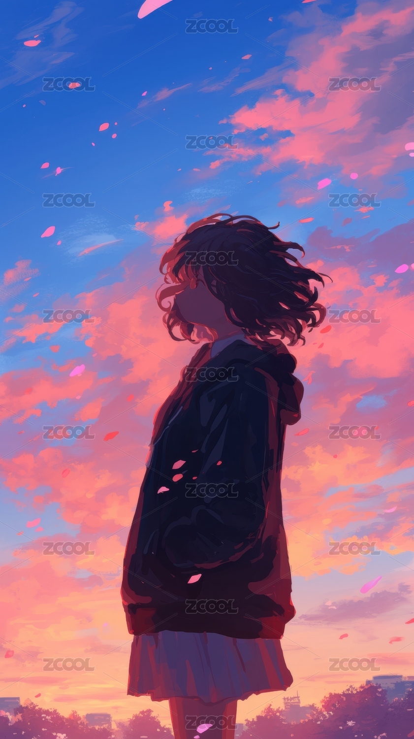 樱花树下仰望的少女
