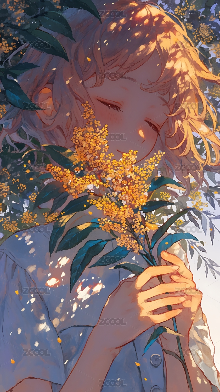 抱桂花束的可爱女生