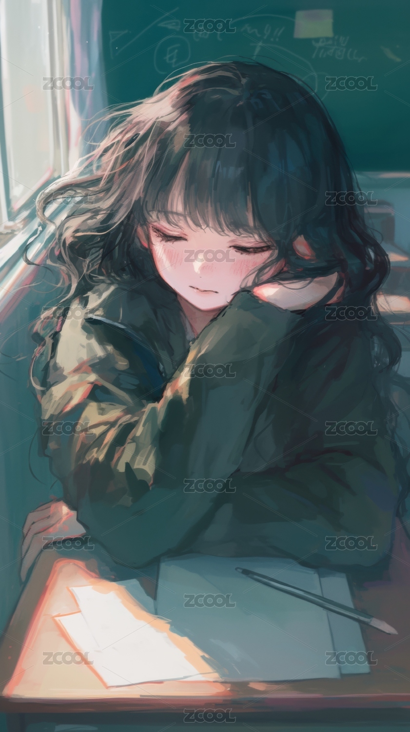 窗边女孩专注书写