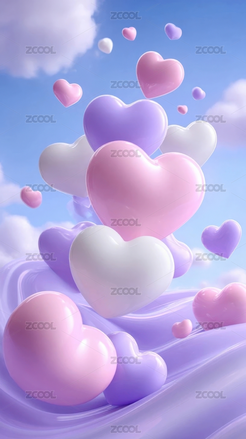 漂浮的粉彩爱心