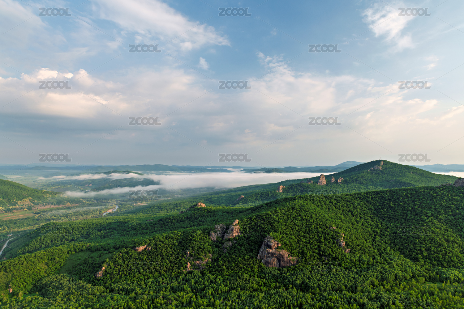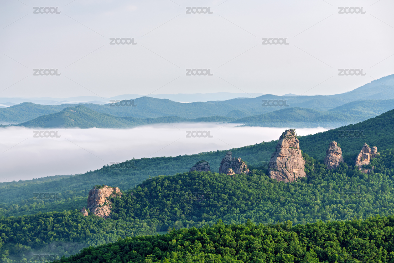 喇嘛山,国家,森林,公园,晨雾,云海,岩石,绿色,夏季,夏天