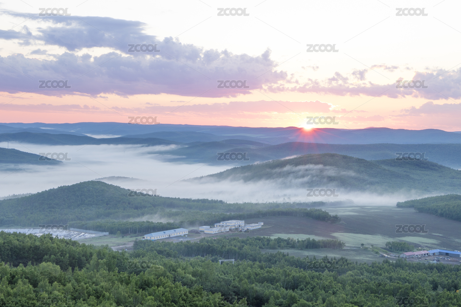 中国内蒙古自治区牙克石市巴林镇喇嘛山晨雾